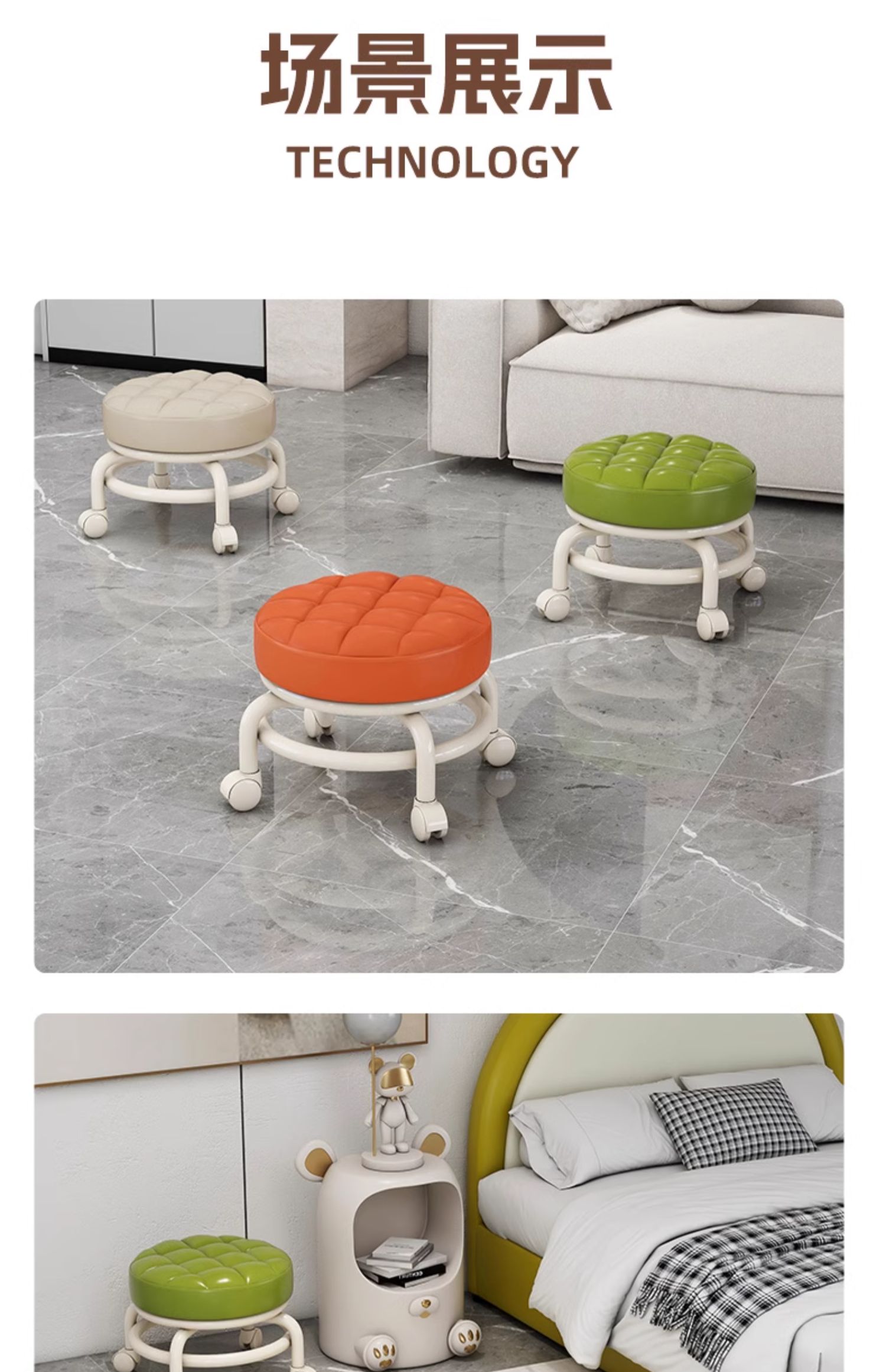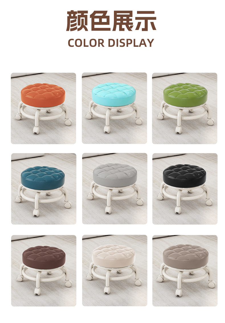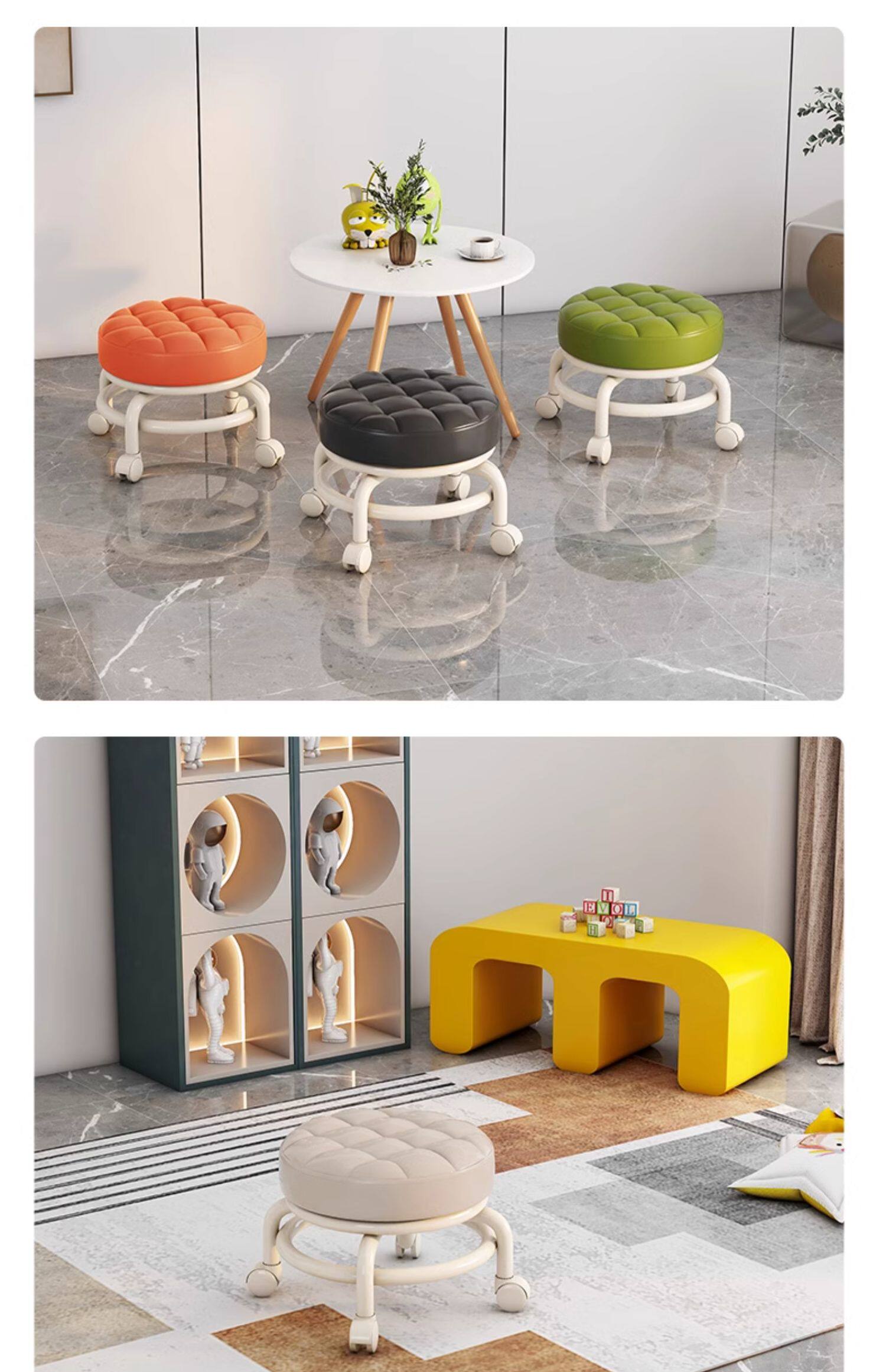 Поворотный маленький табурет на бесшумных роликах, низкий табурет для уборки пола, ремонта швов, педикюра, круглый табурет со спинкой, маленький стул, передвижная скамейка.