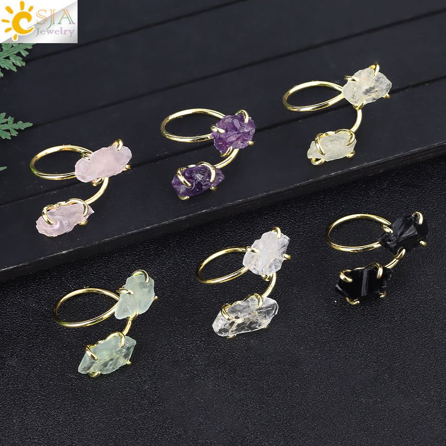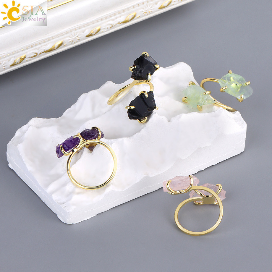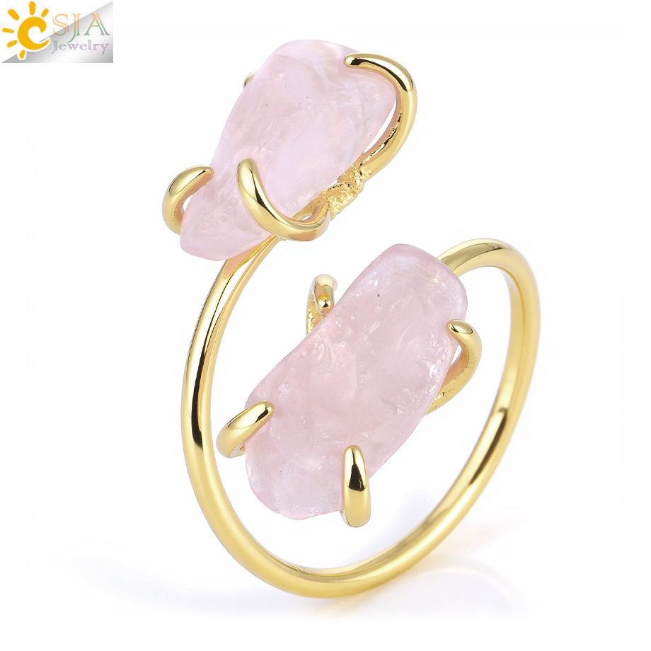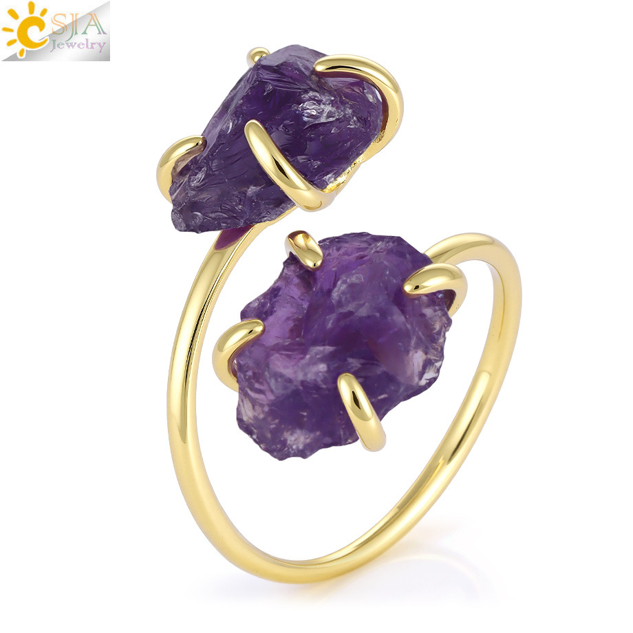 Оптовая продажа ювелирных изделий из Европы и Америки, кольцо из необработанного натурального камня аметиста и розового кварца, регулируемое, модные украшения