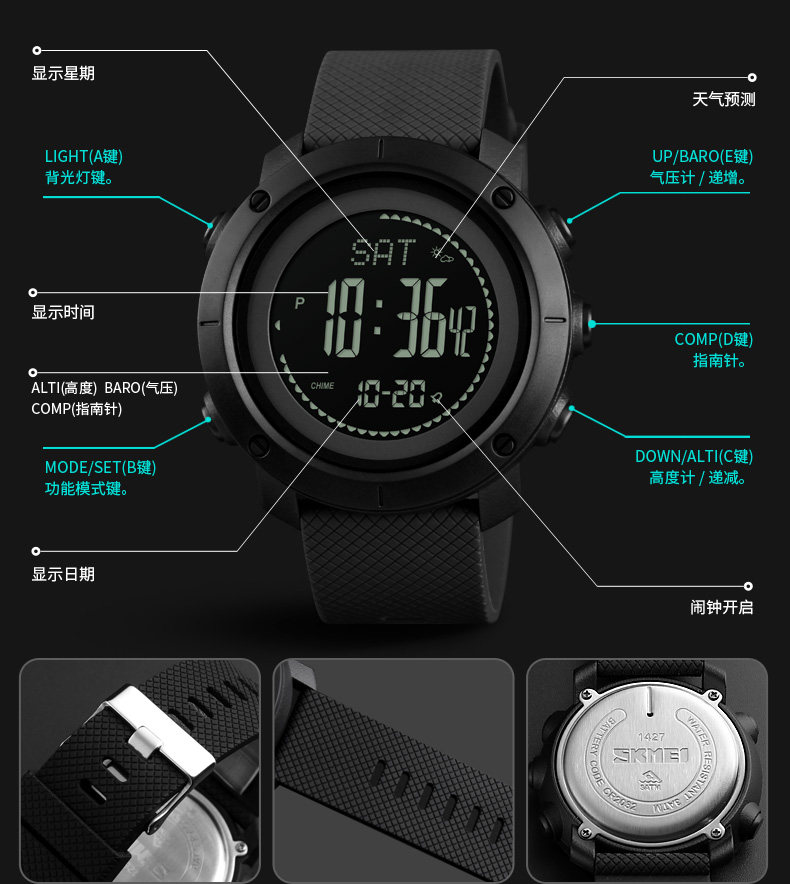 Модель для улицы — черный стальной обод [измерение высоты давления воздуха + компас + термометр + глубокая водонепроницаемость]; Модель для улицы — стальной обод военного зеленого цвета [измерение высоты давления воздуха + компас + термометр + глубокая водонепроницаемость]; Модель для улицы — черное резиновое кольцо [измерение высоты давления воздуха + компас + термометр + глубокая водонепроницаемость]; Модель для улицы — резиновое кольцо военного зеленого цвета [измерение высоты давления воздуха + компас + термометр + глубокая водонепроницаемость]; Обычная модель — черно-белое резиновое кольцо [будильник по расписанию + глубокая водонепроницаемость + светящийся дисплей]; Обычная модель — черное стальное кольцо [будильник с таймером + глубокая водонепроницаемость + светящийся дисплей]; Обычная модель — черное резиновое кольцо [будильник по расписанию + глубокая водонепроницаемость + светящийся дисплей]; Обычная модель — стальное кольцо военного зеленого цвета [будильник по расписанию + глубокая водонепроницаемость + светящийся дисплей]