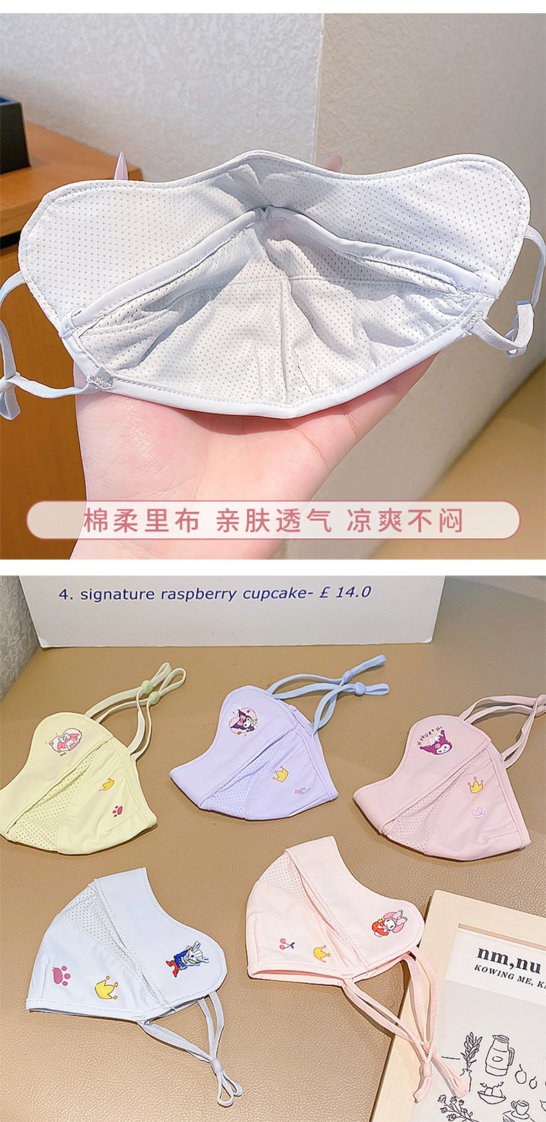Детская солнцезащитная маска Kuromi, летняя тонкая дышащая маска с защитой от ультрафиолета для девочек, детская солнцезащитная маска, регулируемая