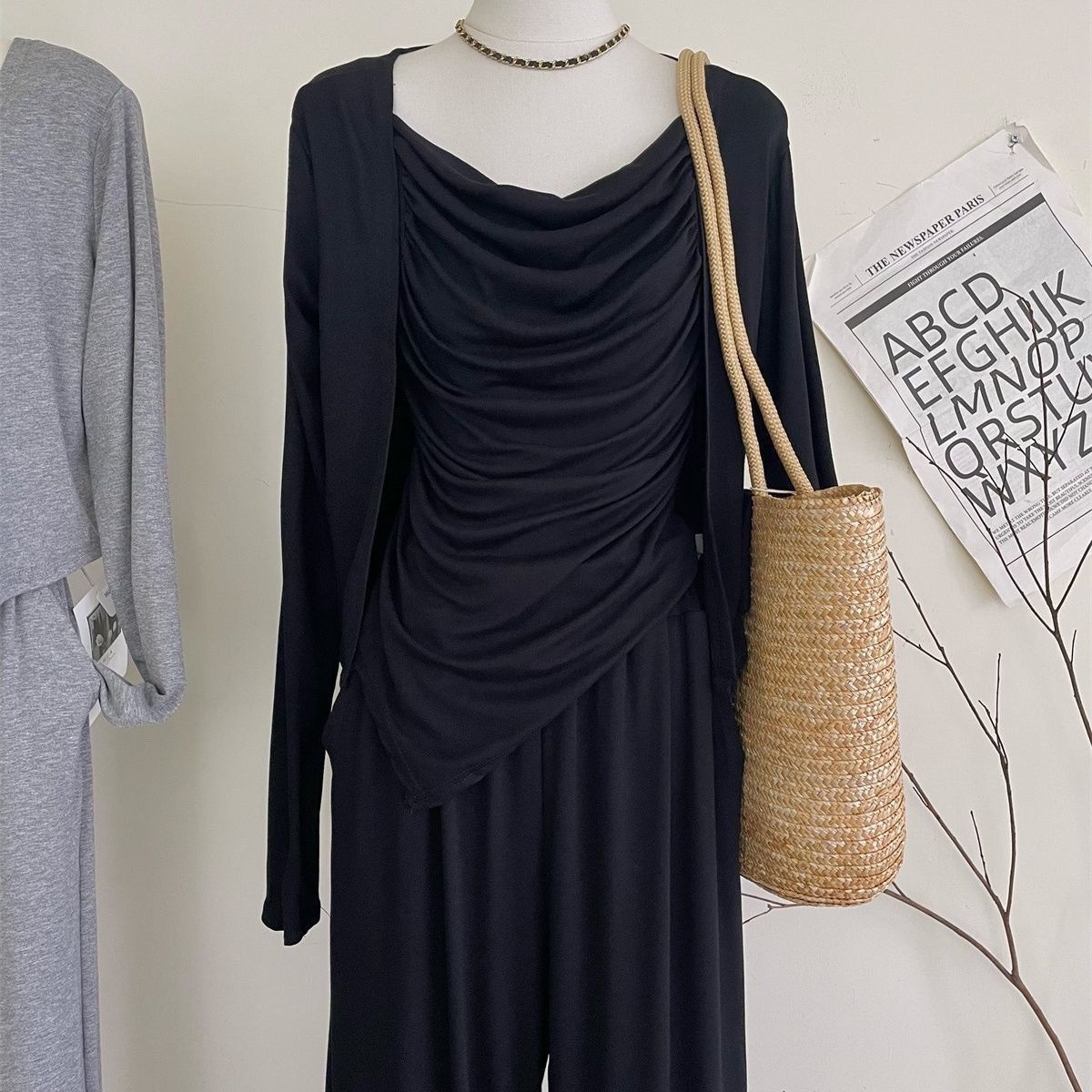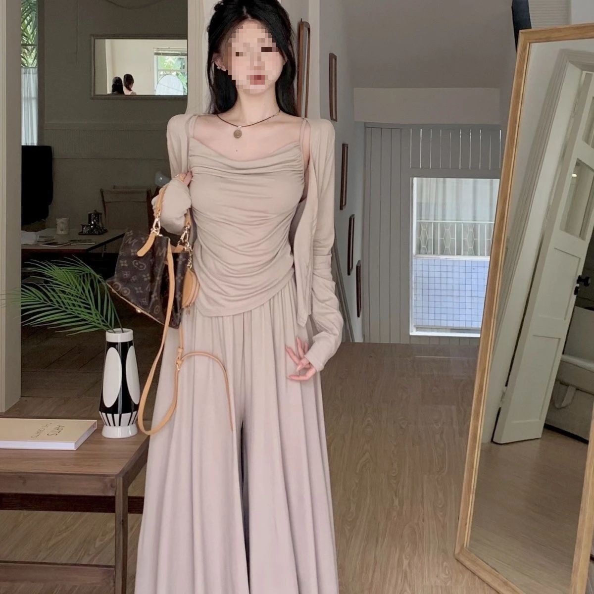 [Комплект из трех предметов] Новый костюм-кардиган, ленивый стиль, стройнящий кардиган и подтяжки для тела + повседневная полуюбка