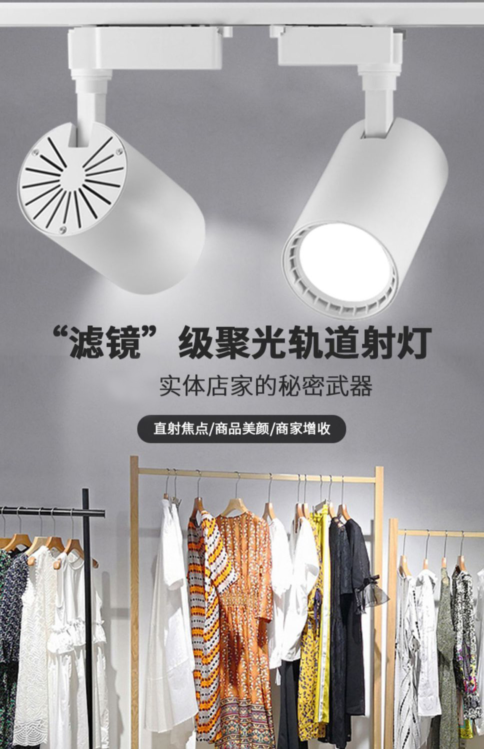 Прожектор, светодиодный трековый светильник, коммерческий магазин одежды, поверхностный монтаж, выставочный зал, рельсовый прожектор, фоновая стена, прямая трансляция, трековый прожектор COB