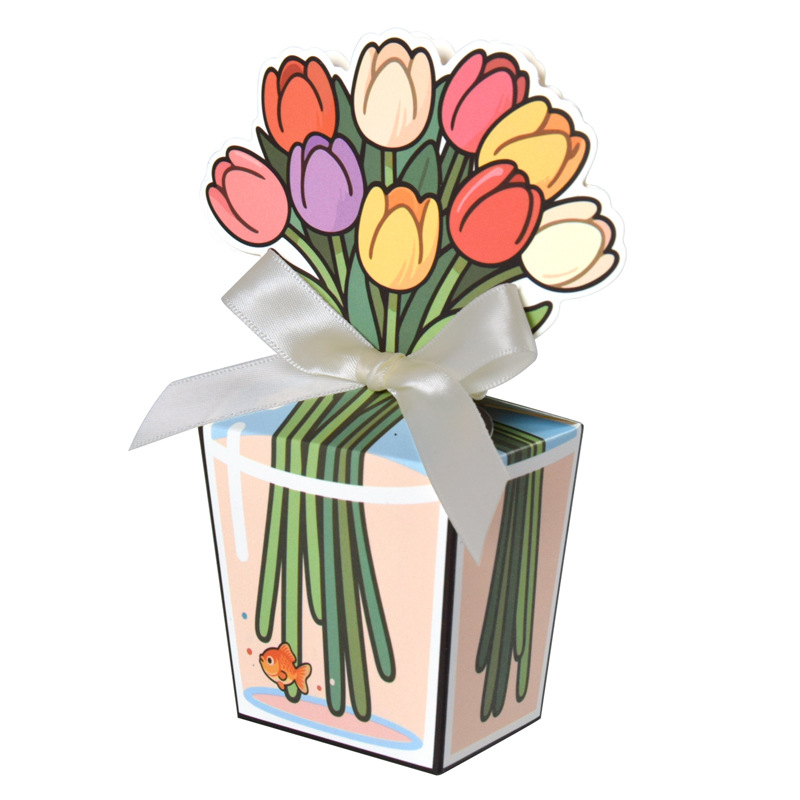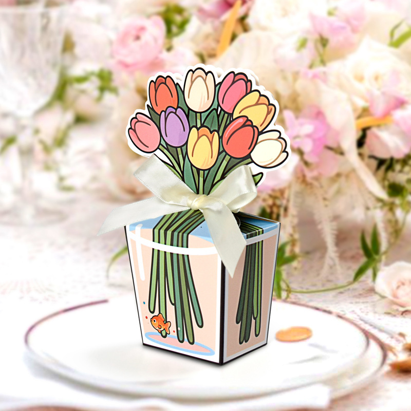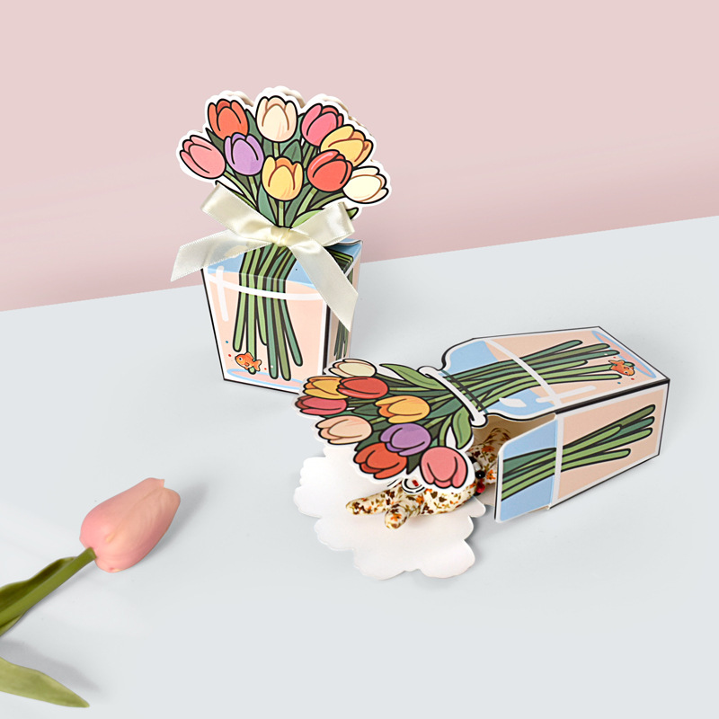 Мультяшная романтическая коробочка для конфет с тюльпанами, складная подарочная коробка с бантом, маленькая цветная коробка