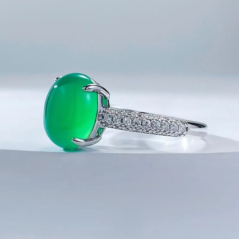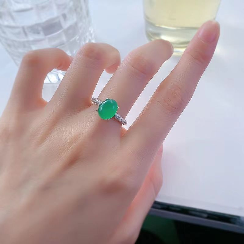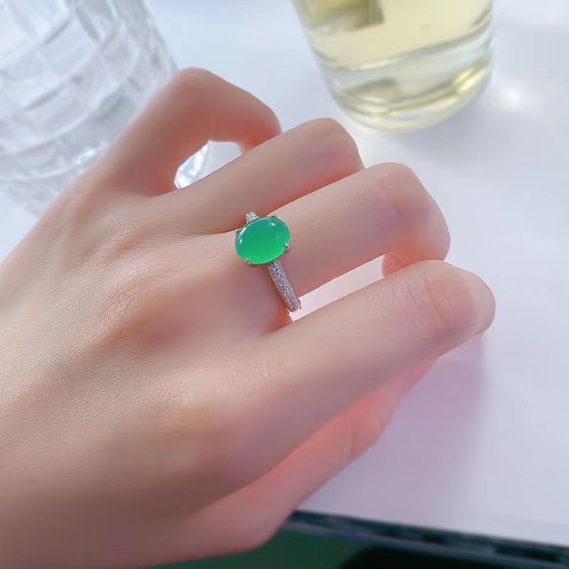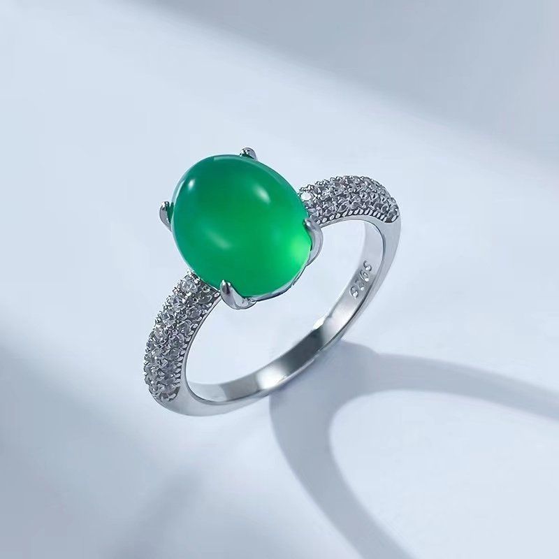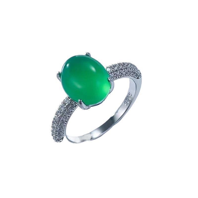 Популярное кольцо из стерлингового серебра 925 пробы с инкрустацией высокого ледяного зеленого цвета халцедона, элегантное большое яйцевидное лицо 6*8, новое универсальное кольцо в национальном стиле в стиле шинуазри