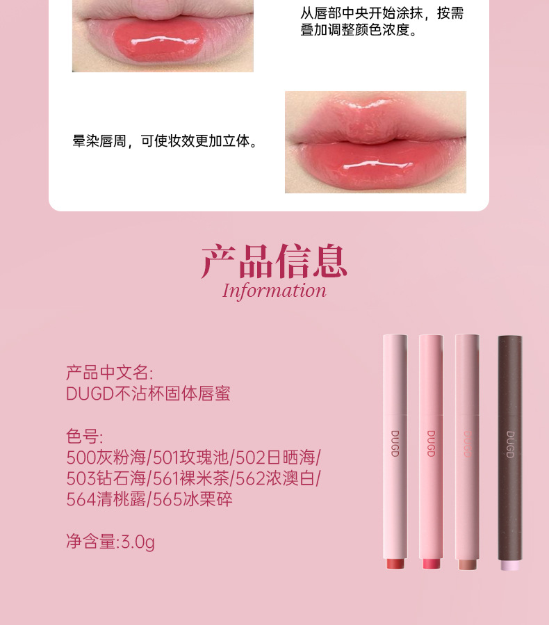 Новый улучшенный твердый блеск для губ DUGD, водно-глянцевая зеркальная глазурь для губ, которую нелегко приклеить к чашке, долговечная увлажняющая помада-ручка