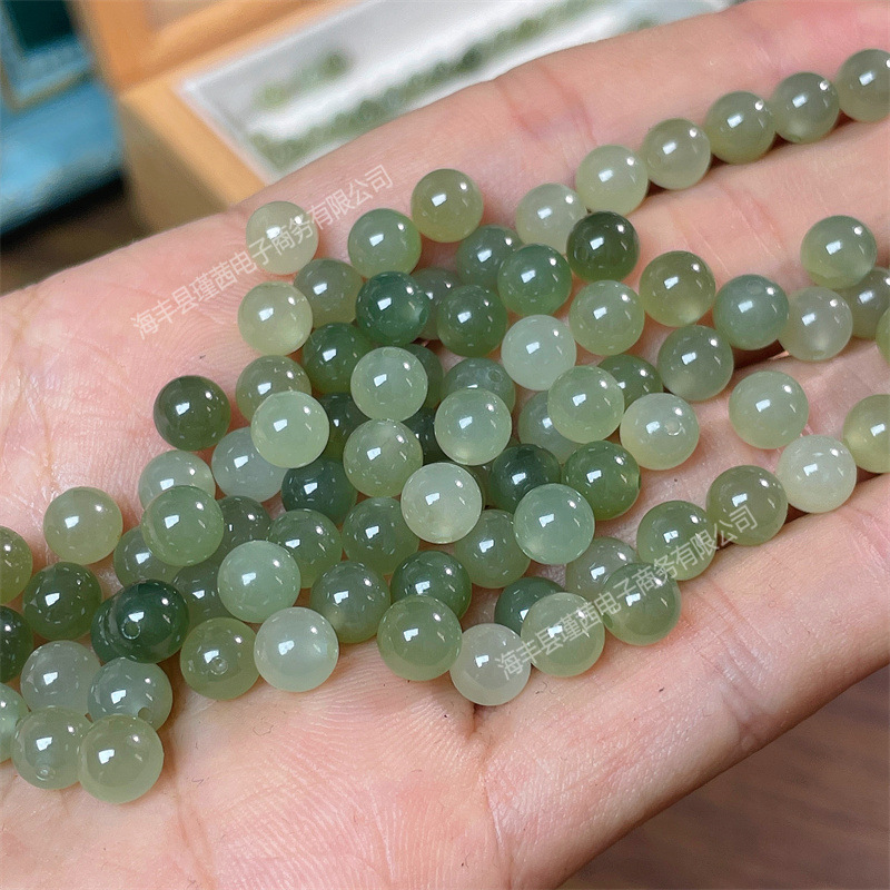 Натуральный нефрит Хэтянь, бусины с половиной отверстия, 6 мм, серьги, бусины, чистые и ледяные, прямая трансляция, популярные бусины, свободные бусины, круглые бусины
