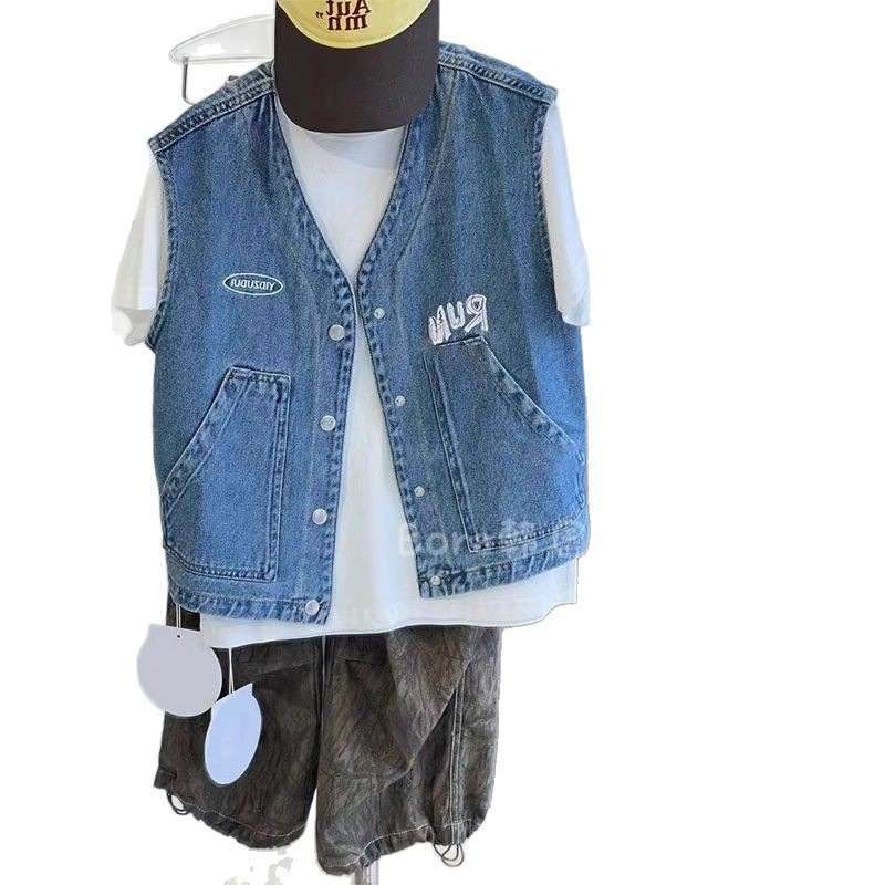 Детский жилет для мальчиков, весенне-летняя одежда 2025, новая джинсовая синяя безрукавка, модная куртка для малышей, можно носить на улице
