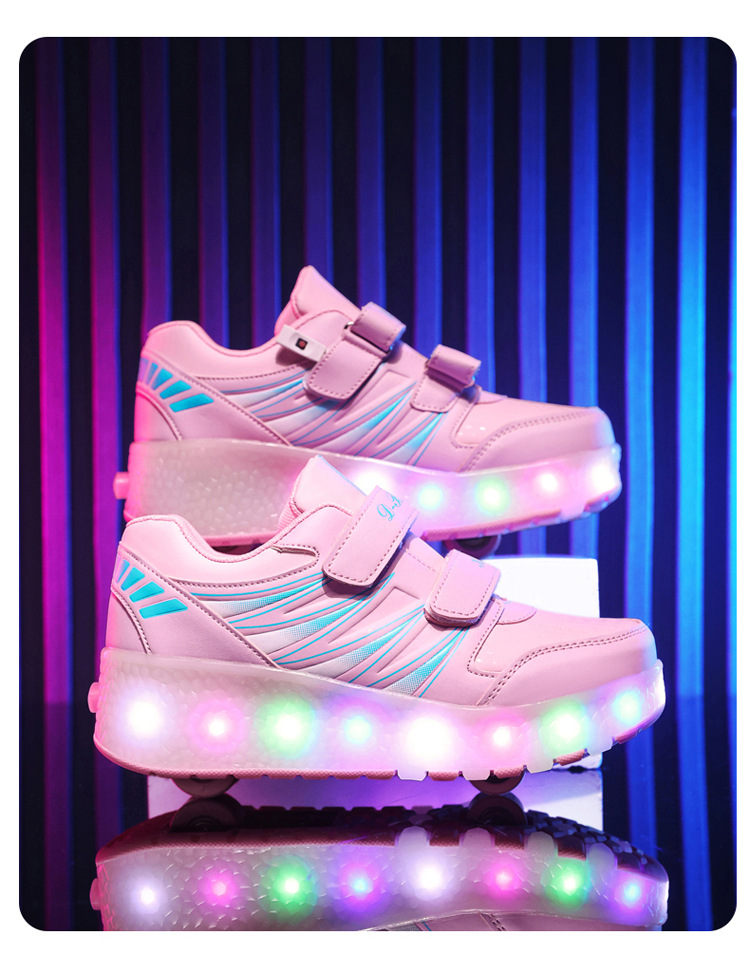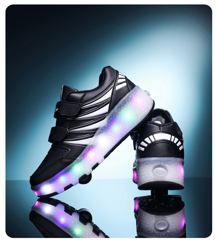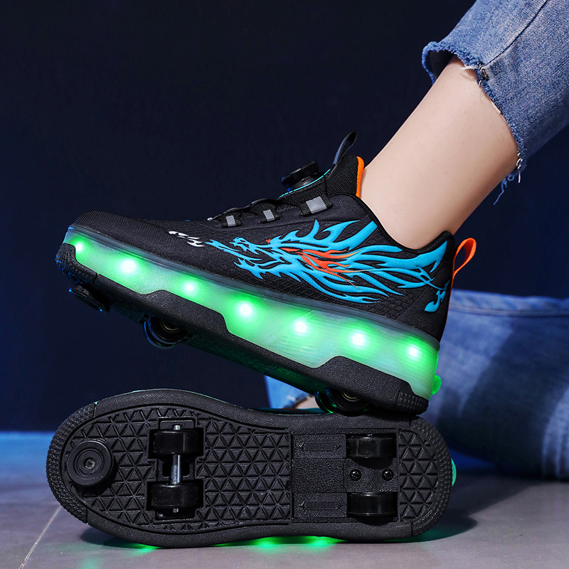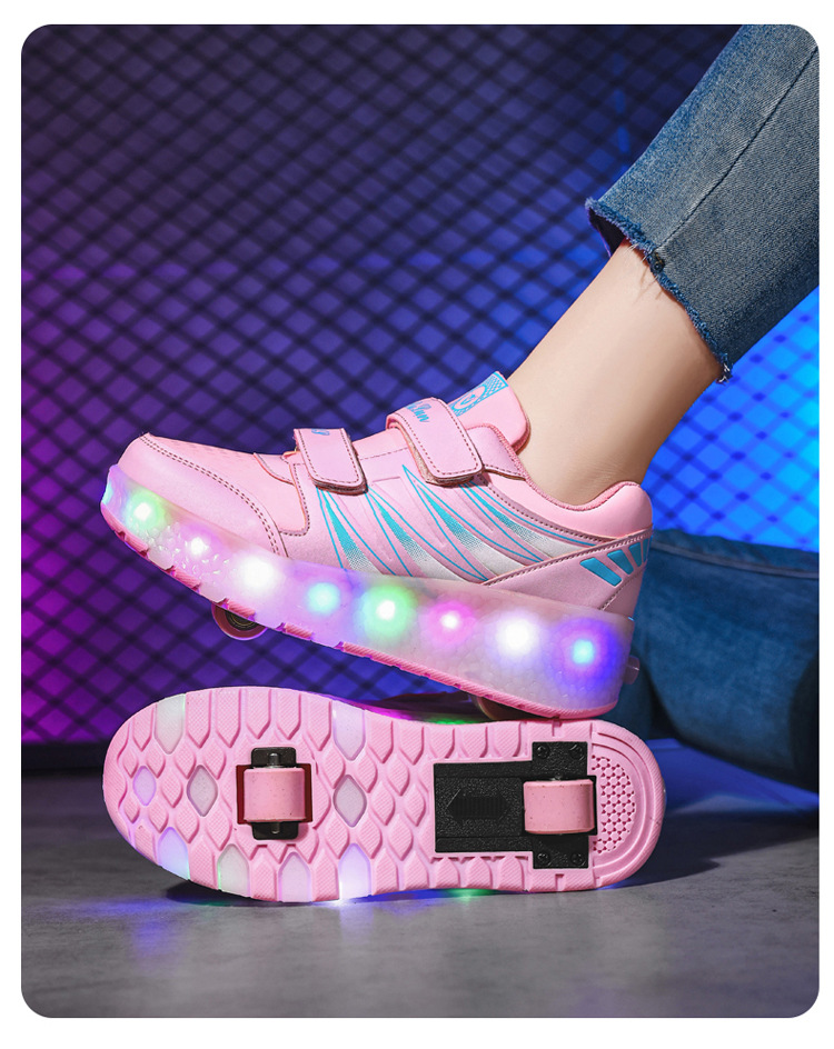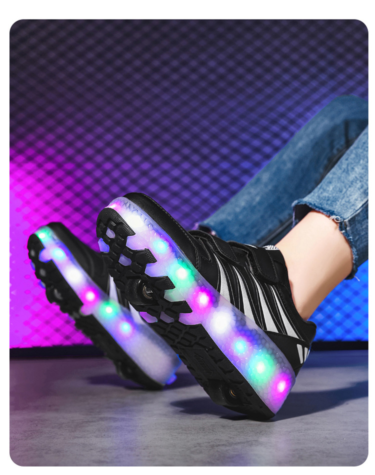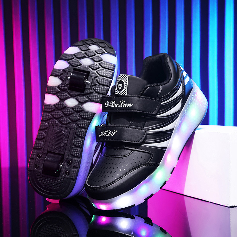 Прямые поставки с фабрики: новые роликовые кроссовки для девочек с невидимыми двойными четырехколесными светодиодными подсветками, повседневная обувь для мальчиков и студентов.