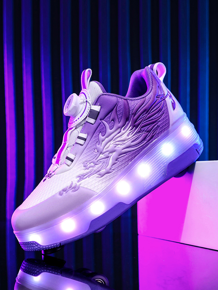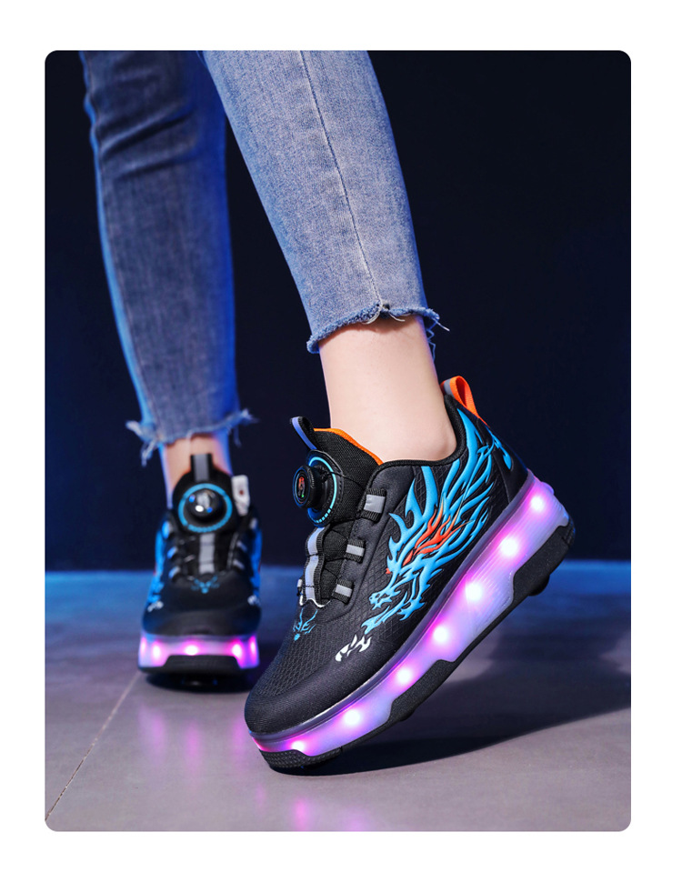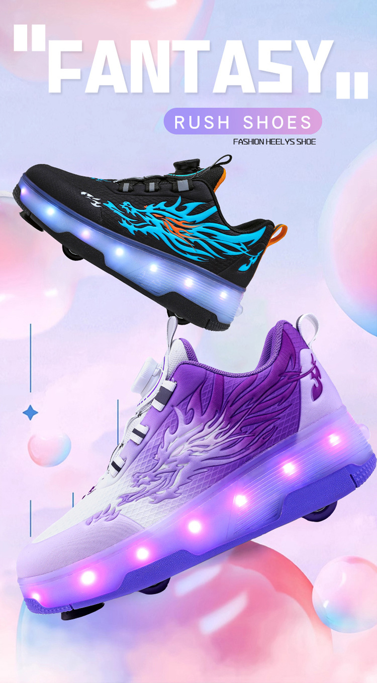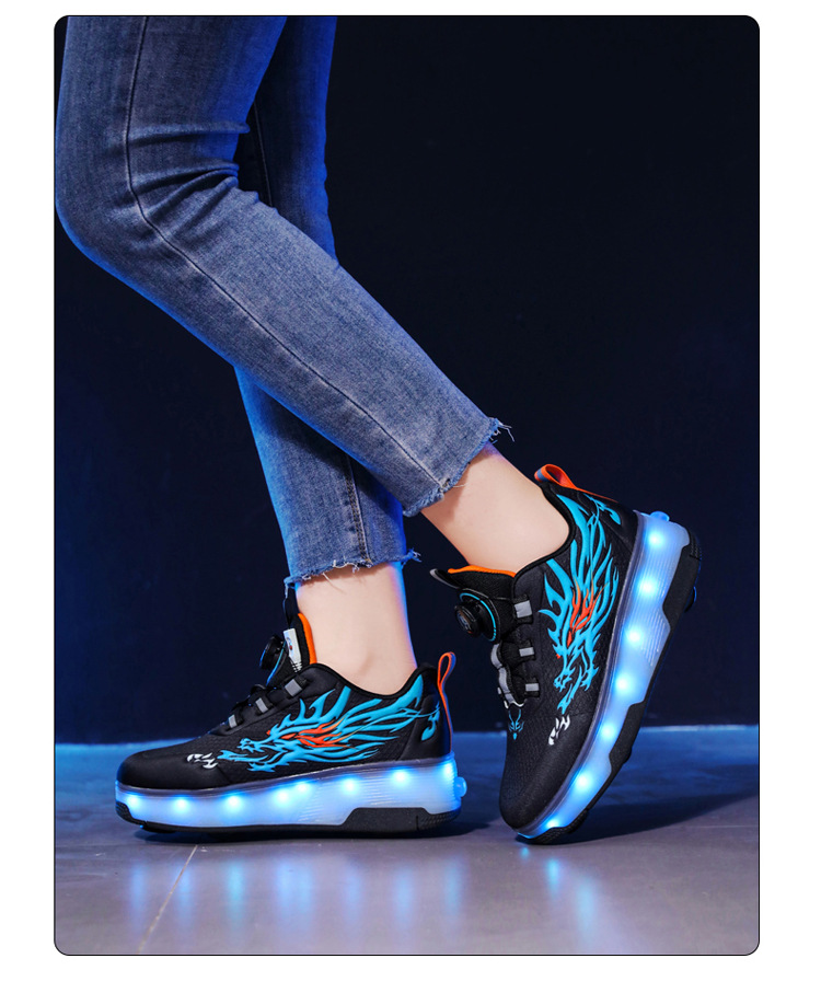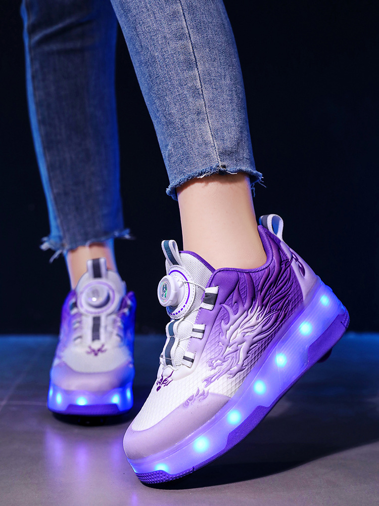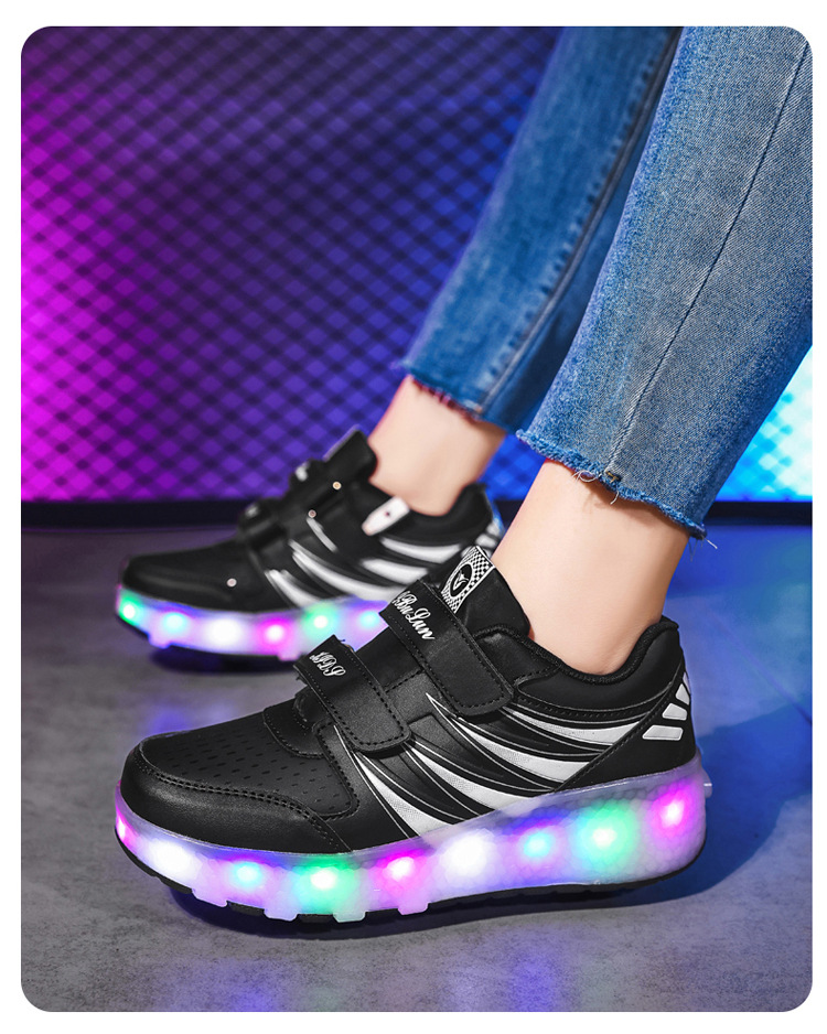 Прямые поставки с фабрики: новые роликовые кроссовки для девочек с невидимыми двойными четырехколесными светодиодными подсветками, повседневная обувь для мальчиков и студентов.