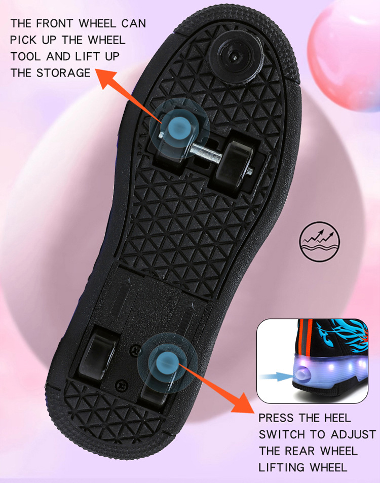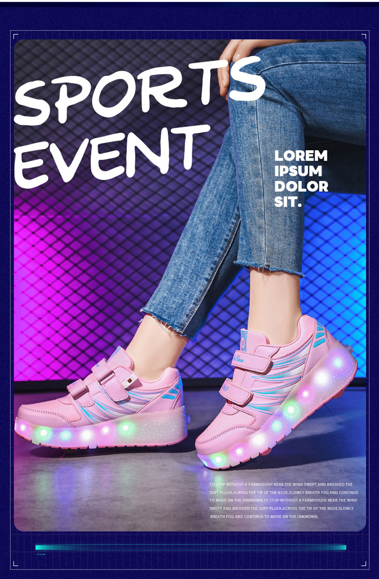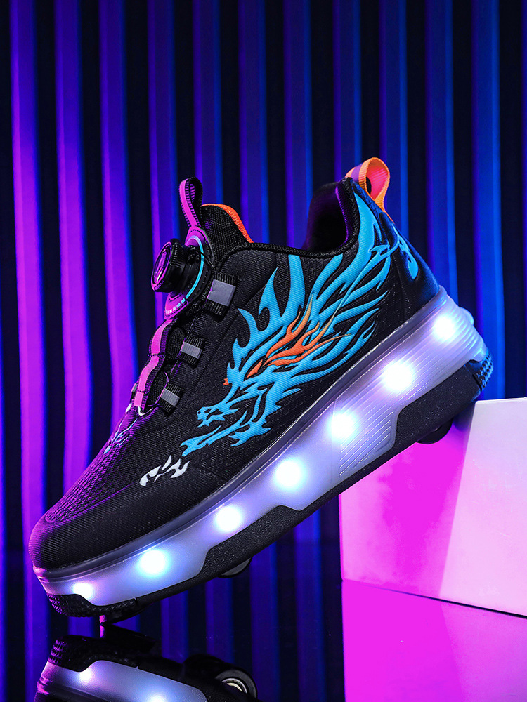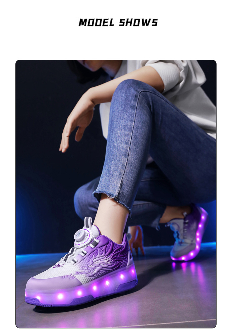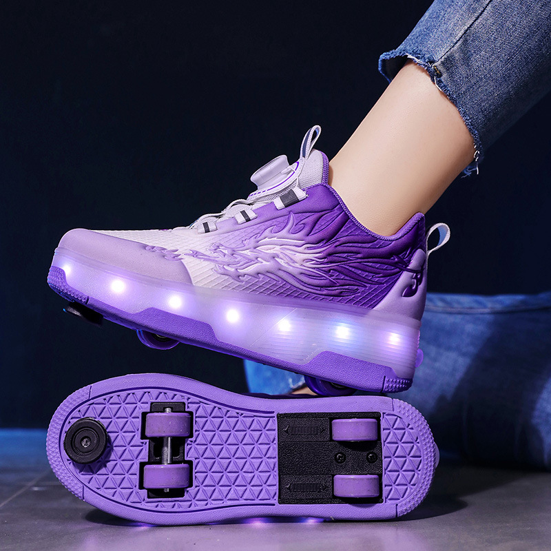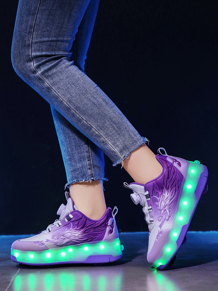 Прямые поставки с фабрики: новые роликовые кроссовки для девочек с невидимыми двойными четырехколесными светодиодными подсветками, повседневная обувь для мальчиков и студентов.