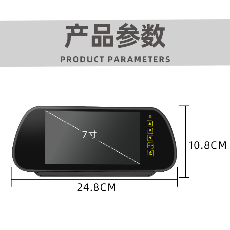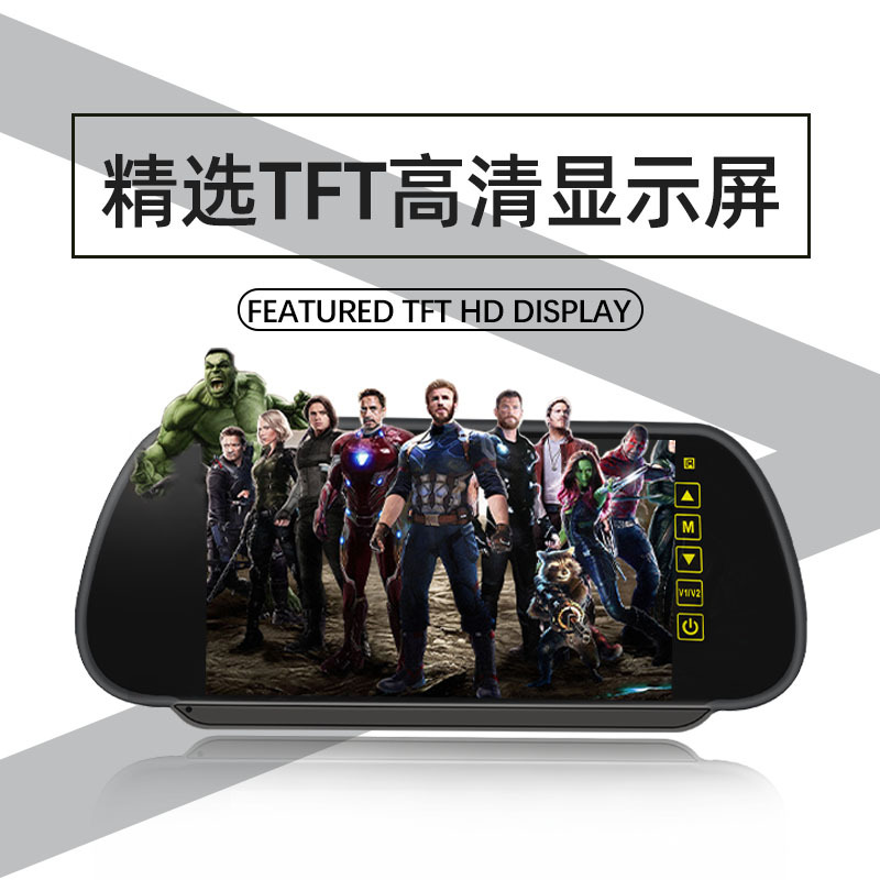 7inch Дисплей зеркала заднего вида, регулируемый 8-ламповый дисплей камеры заднего вида, двухканальный видеовход