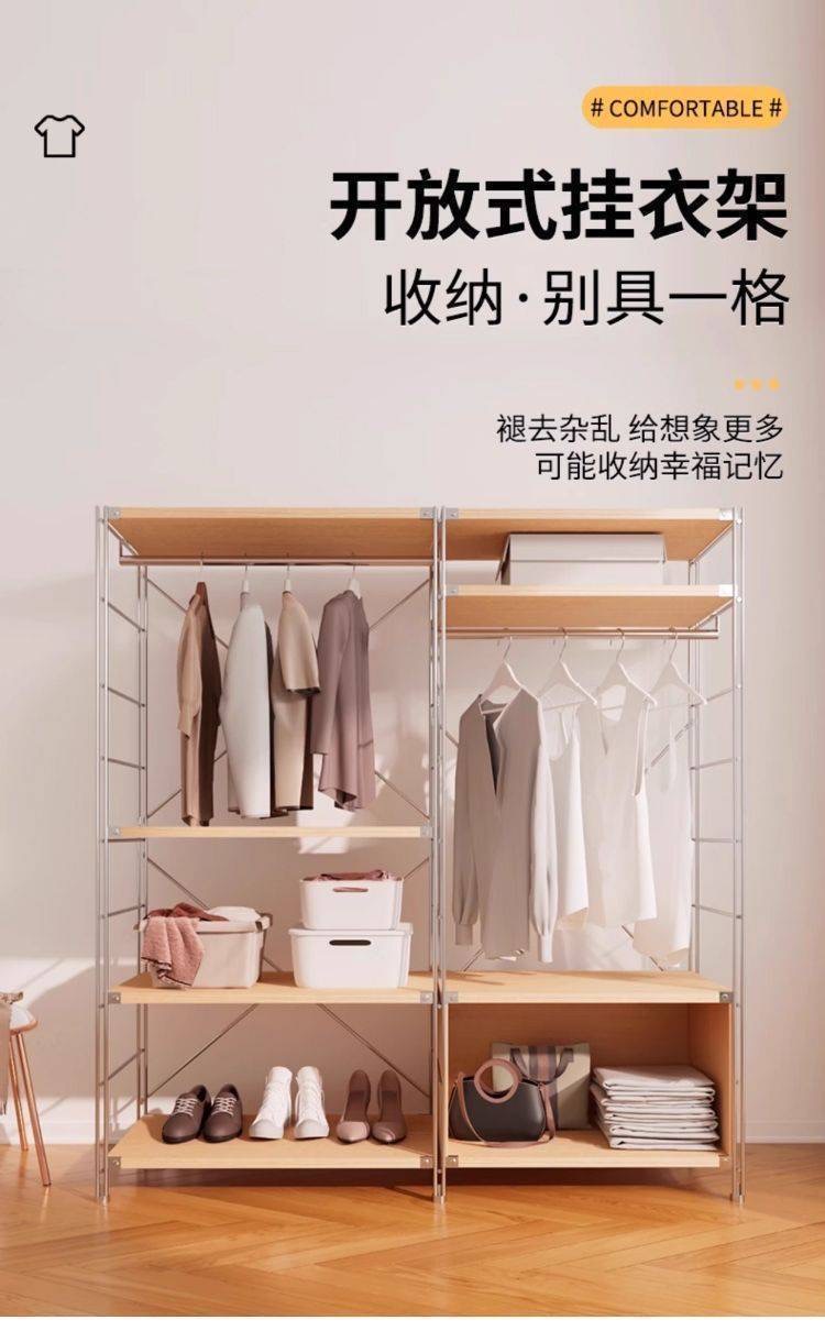 Напольная вешалка для одежды в японском стиле, стеллаж для хранения одежды, полка для гардеробной, открытый шкаф-гардероб