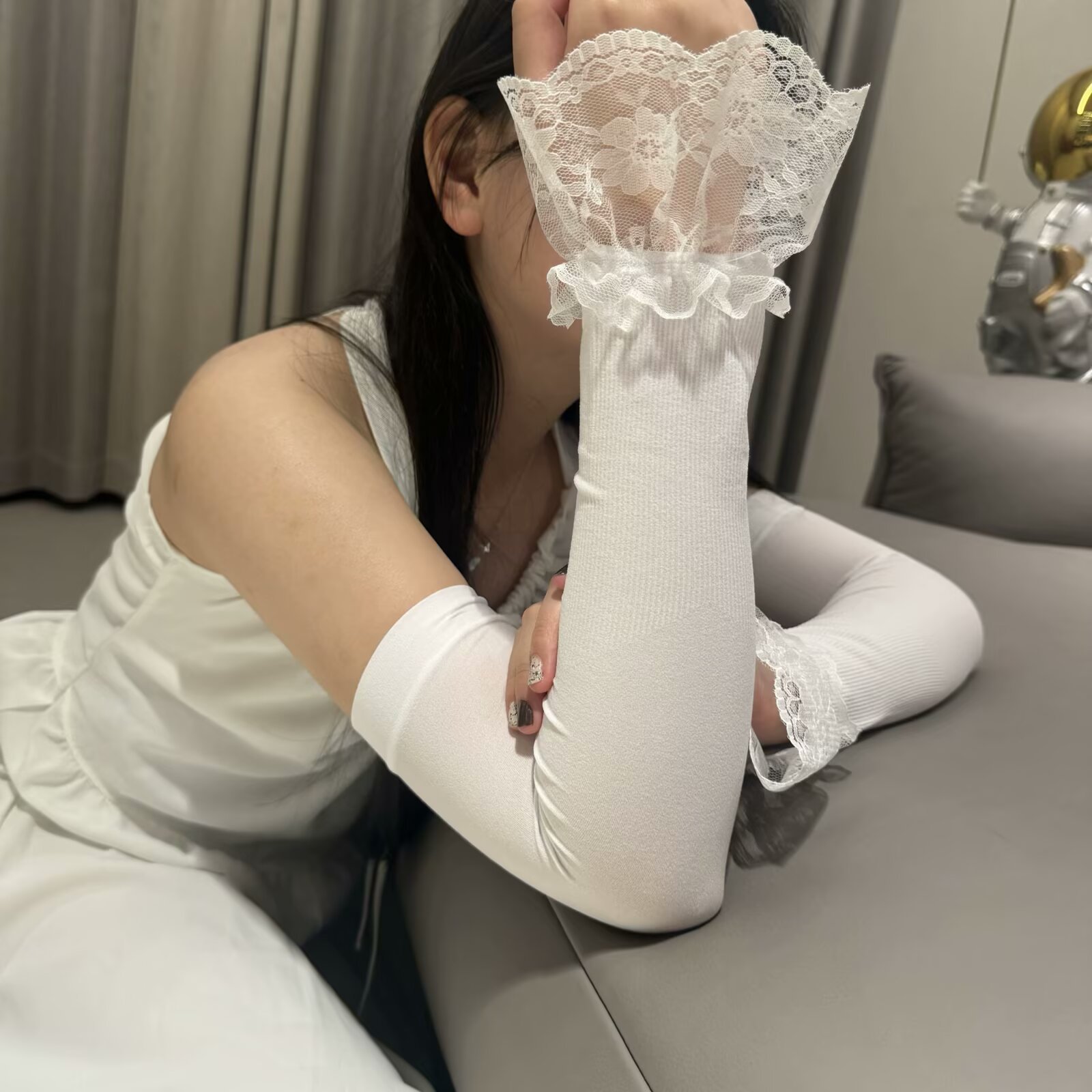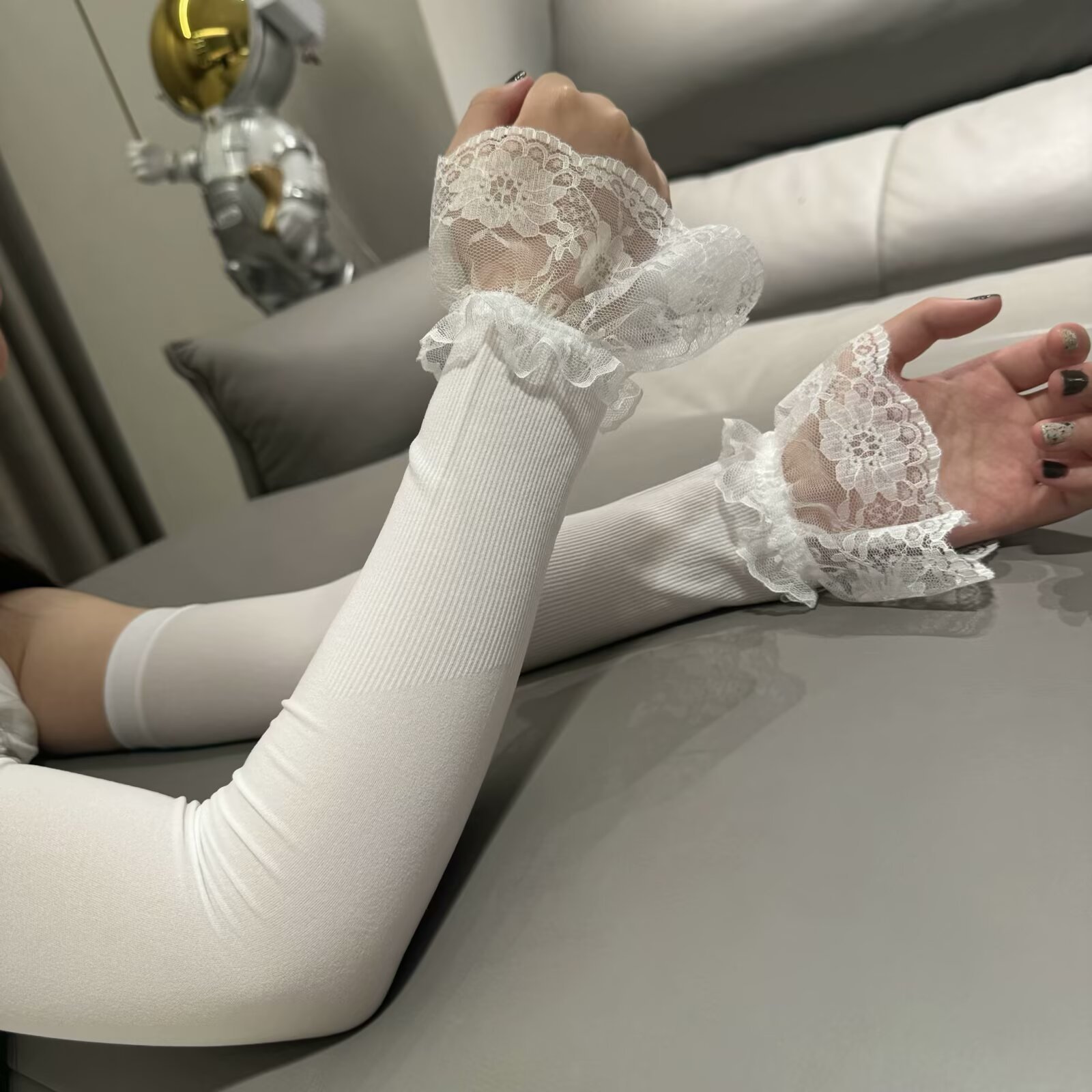 Оптовая продажа летних солнцезащитных женских длинных рукавов для велоспорта на открытом воздухе, ледяных рукавов, рукавов для рук, милых кружевных перчаток