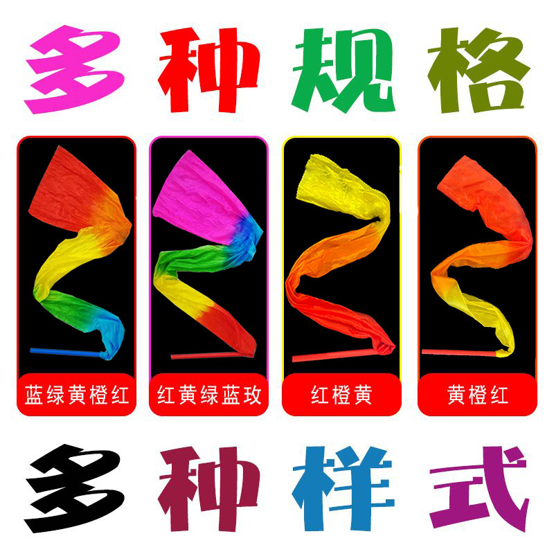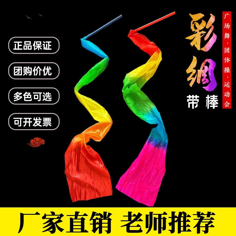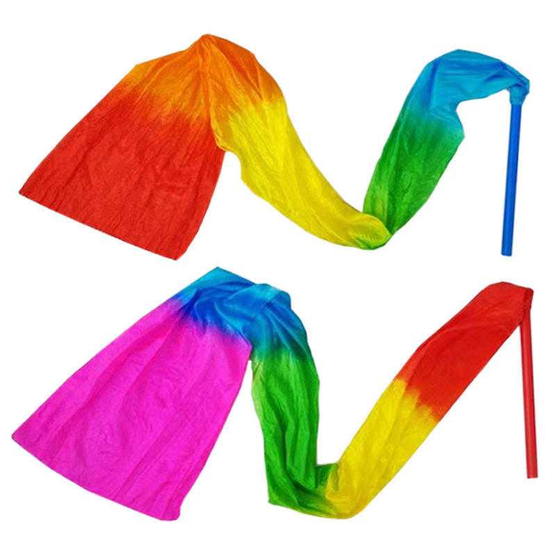 Красочная шелковая танцевальная лента с палочкой, длинная шелковая лента для квадратного танца для взрослых и детей, красочные стримеры для танцев, реквизит для спортивных мероприятий, шелковая лента.