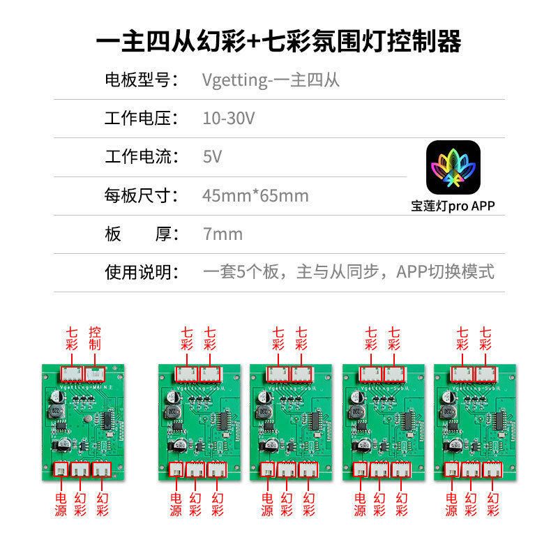 Bocong один основной четыре вспомогательных контроллера красочной атмосферы, автомобильная четырехдверная световая полоса, модифицированная красочная модернизация света 10-30 В