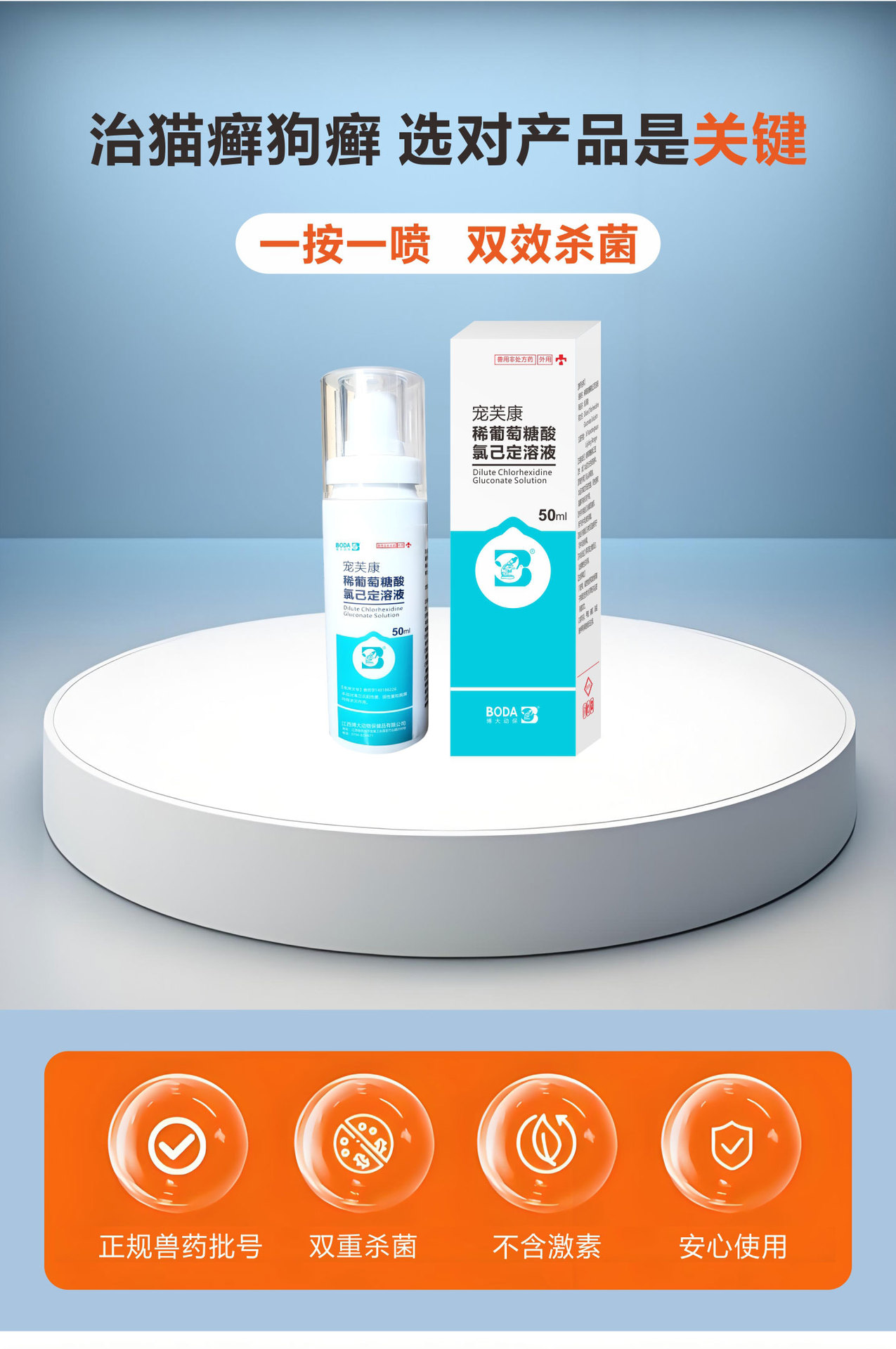 Чонгфуканг разбавленный раствор глюконата хлоргексидина кошка парасолька собака парасолька грибковая инфекция кожа домашних животных антисептик дезинфицирующее средство