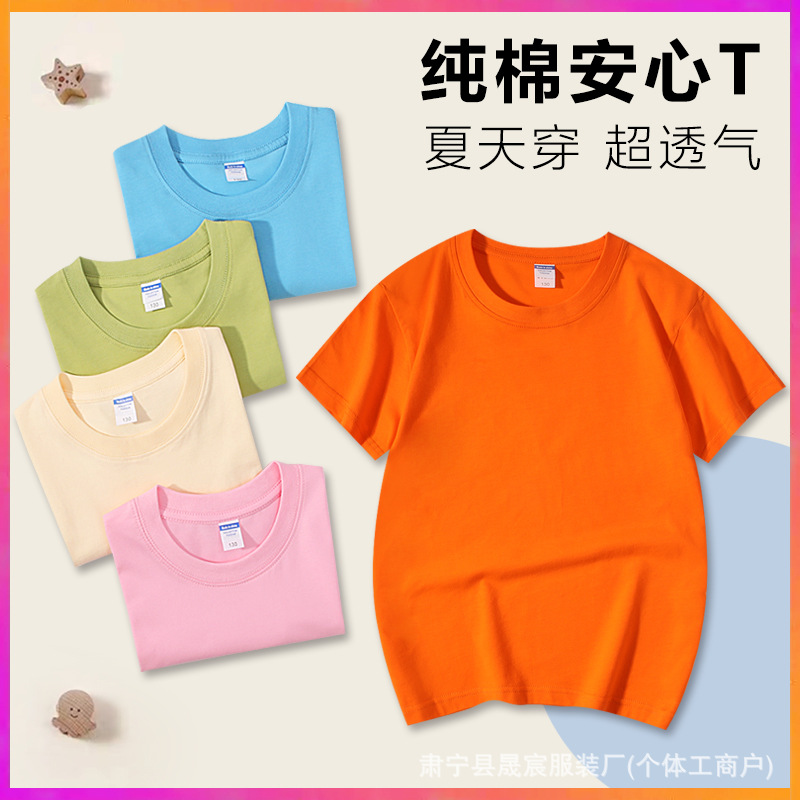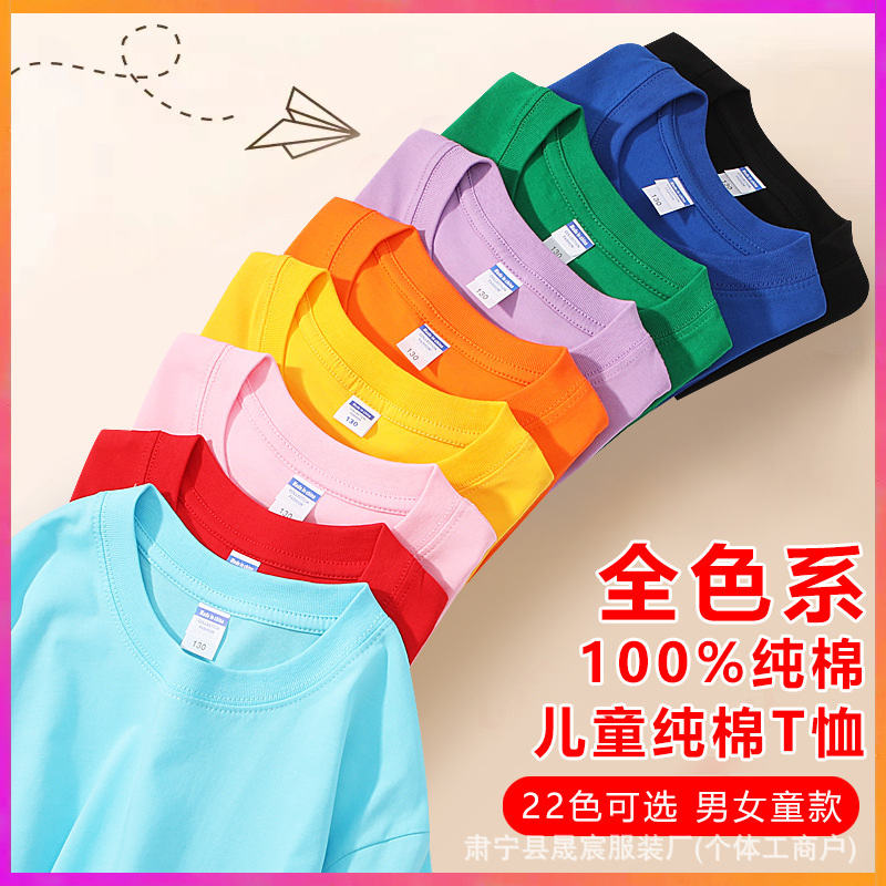 Летняя тонкая однотонная футболка из чистого хлопка с половиной рукавов для мальчиков и девочек, детская базовая рубашка оптом, детская классная форма с принтом.