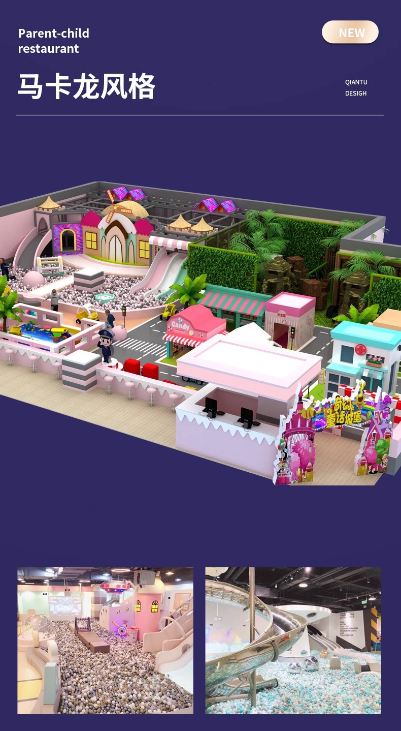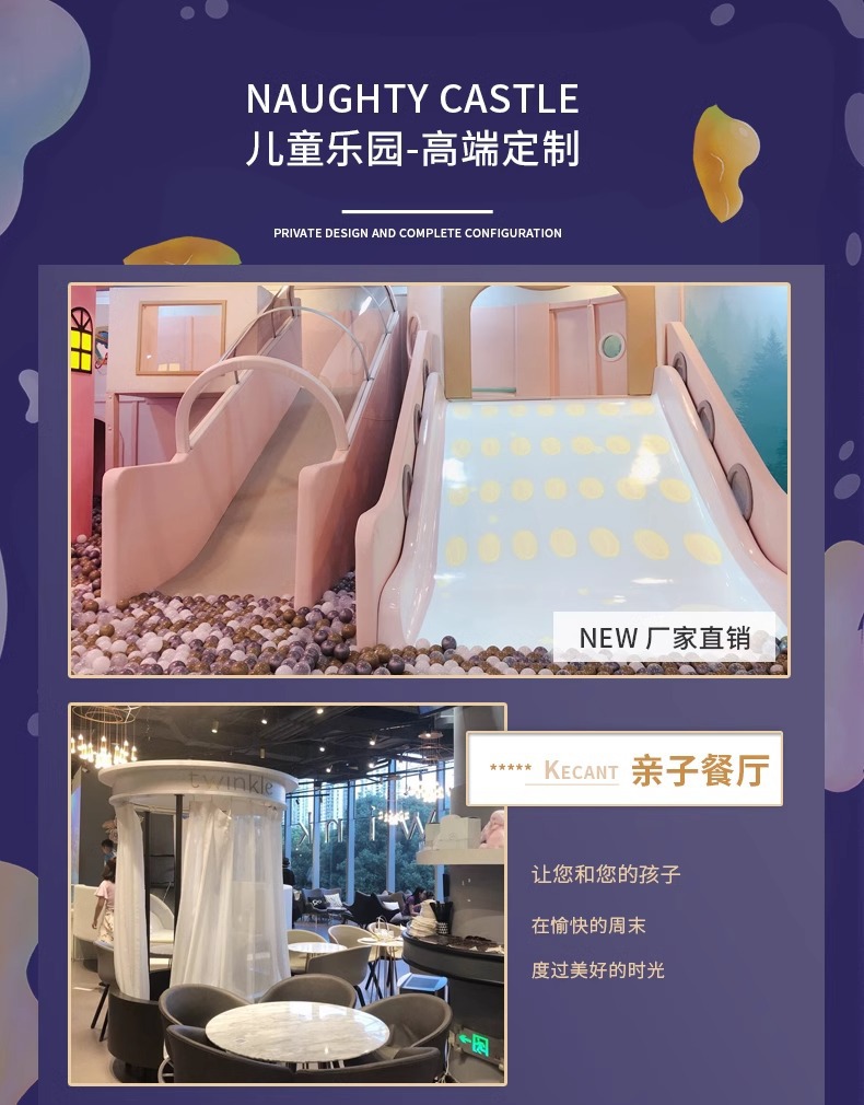 Детский парк развлечений «Непослушный замок» в торговом центре: горки, ресторан для родителей и детей, развлекательные заведения, оборудование для больших и малых площадок.