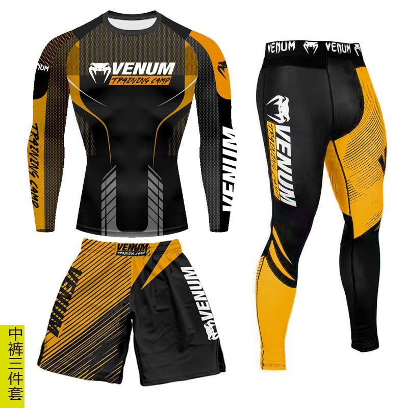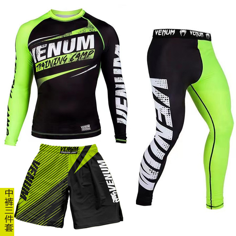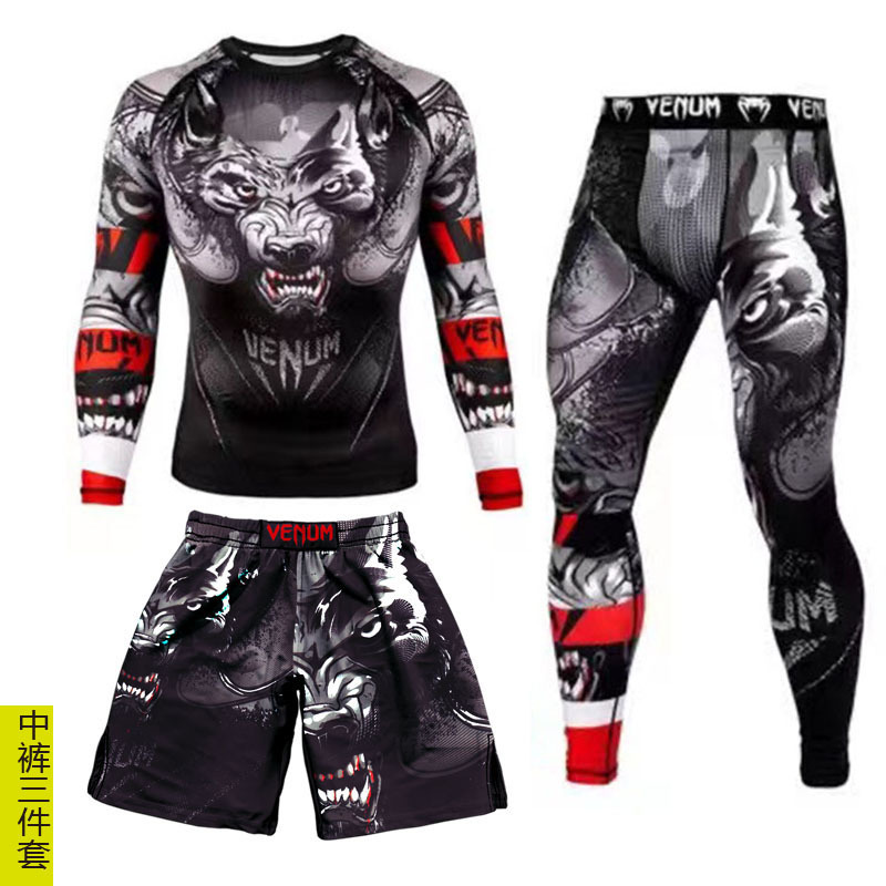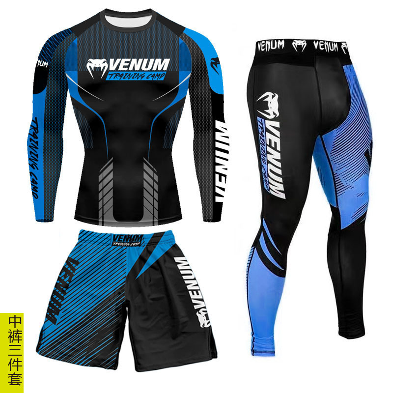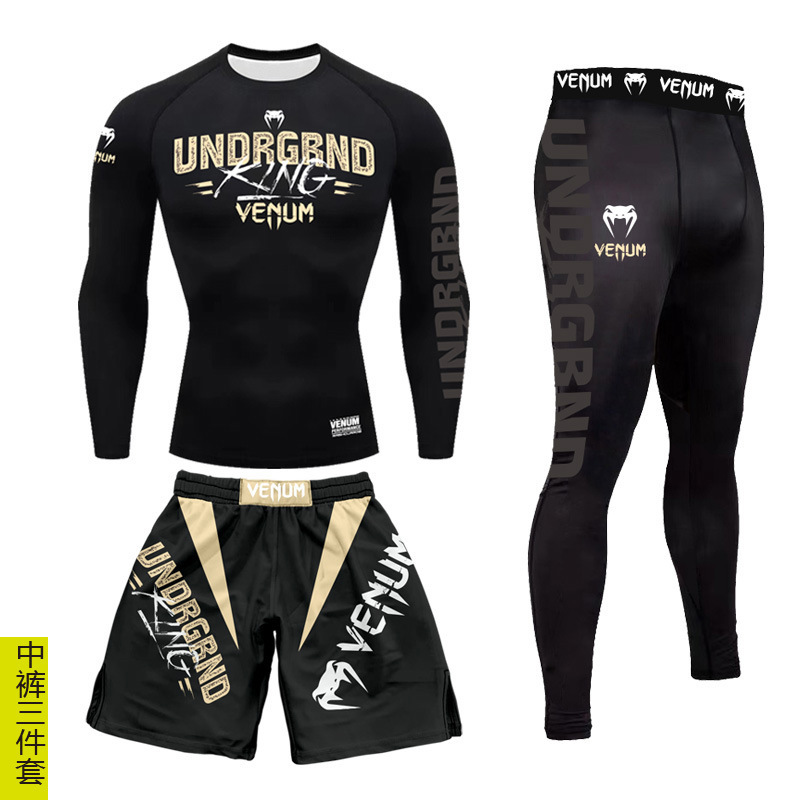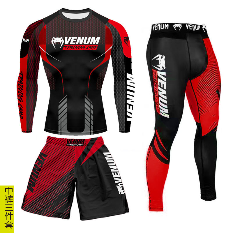 Спортивный тренировочный костюм UFC, мужской боксерский облегающий быстросохнущий костюм для борьбы с ядом по тайскому боксу, комплект из 3 предметов для борьбы в тренажерном зале
