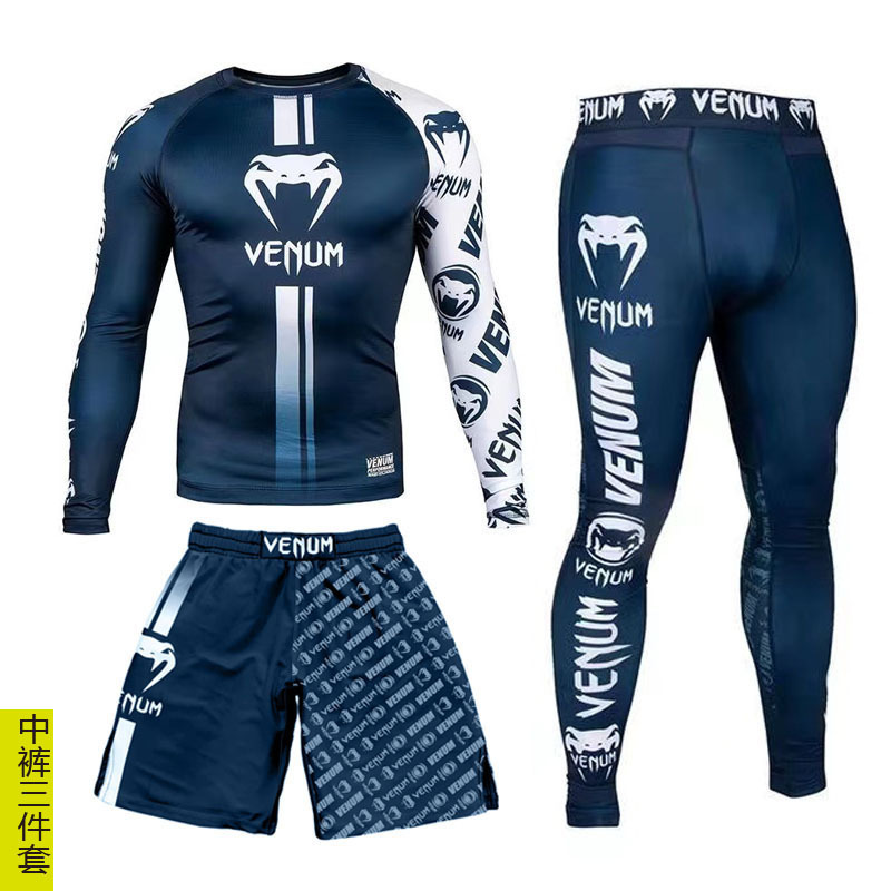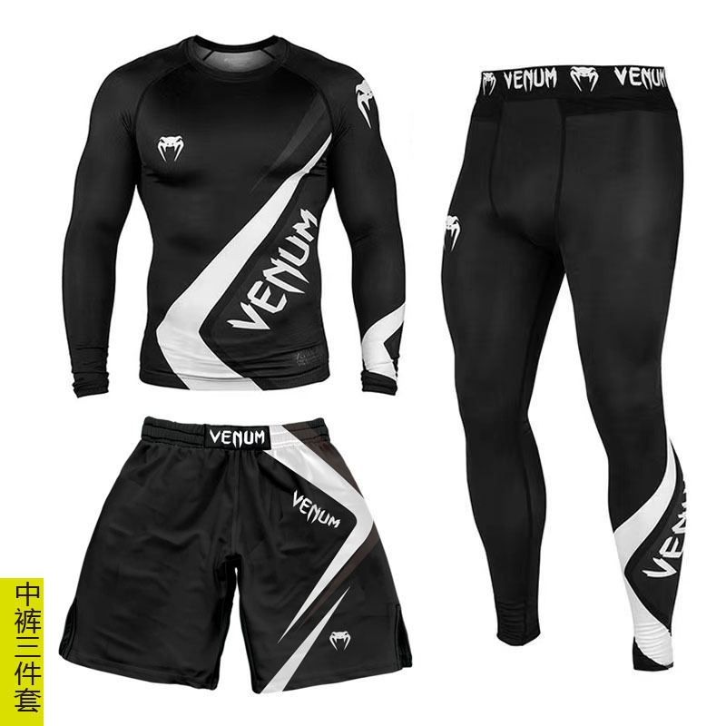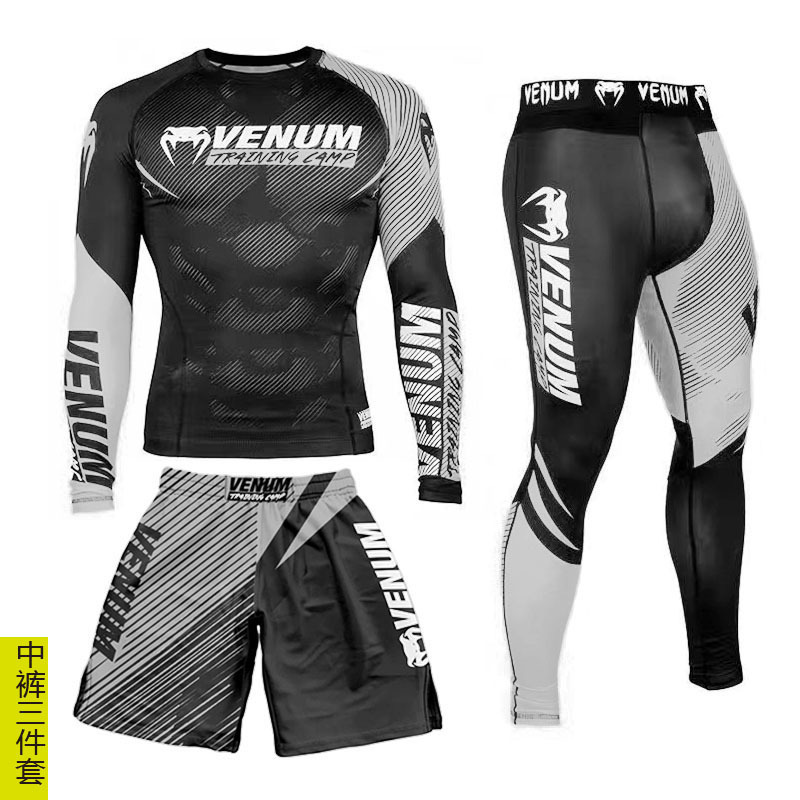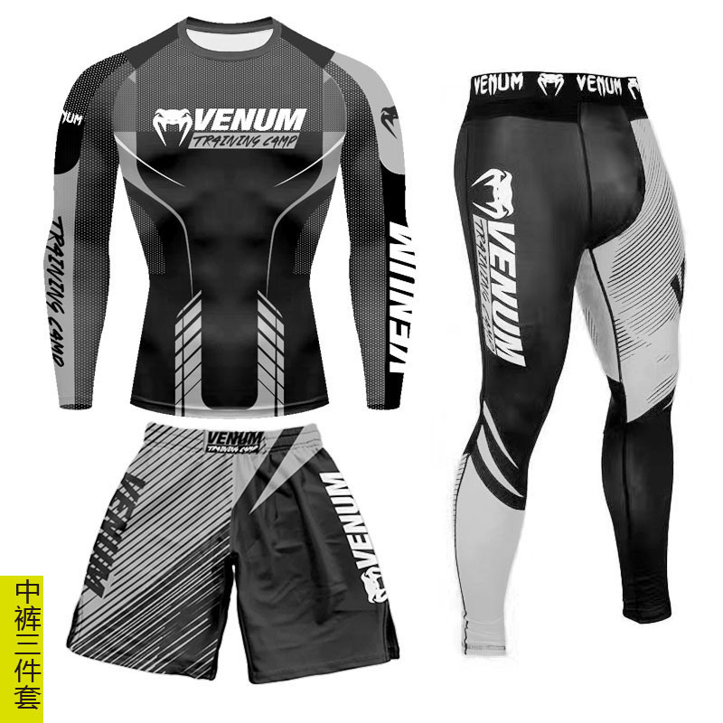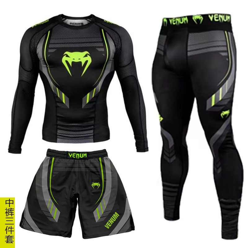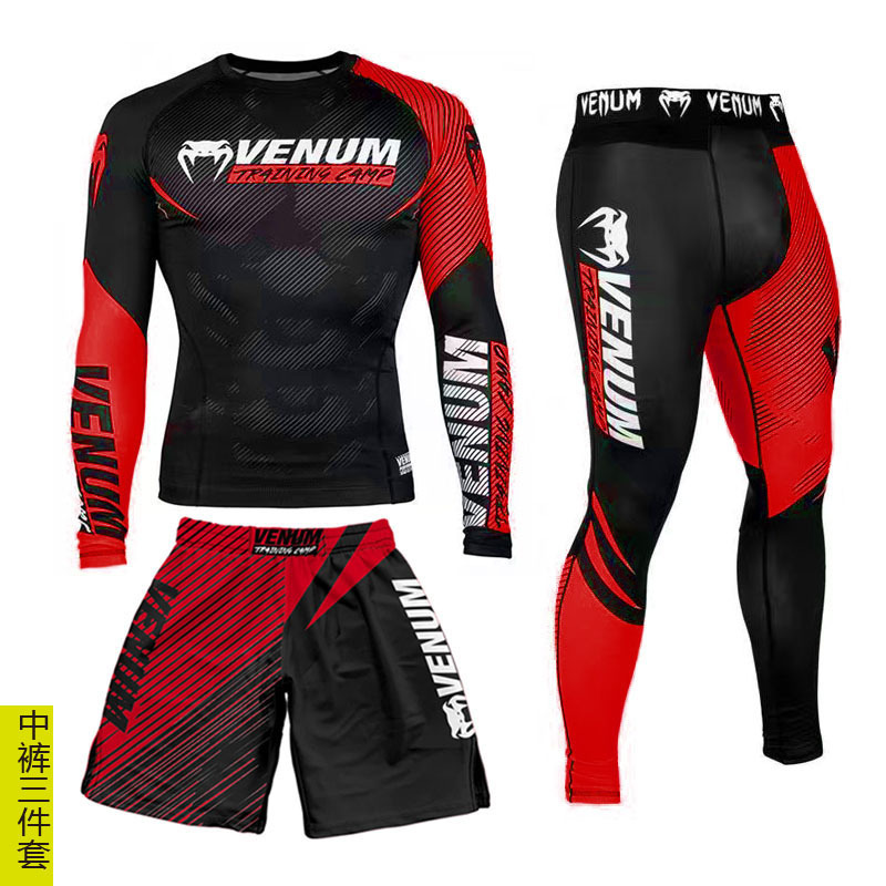 Спортивный тренировочный костюм UFC, мужской боксерский облегающий быстросохнущий костюм для борьбы с ядом по тайскому боксу, комплект из 3 предметов для борьбы в тренажерном зале