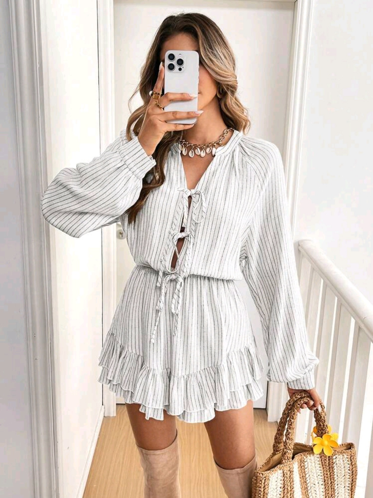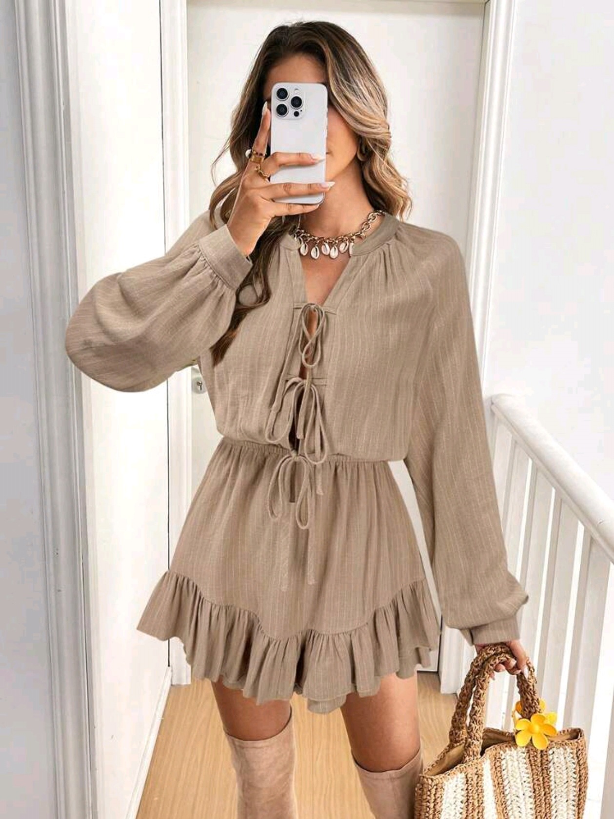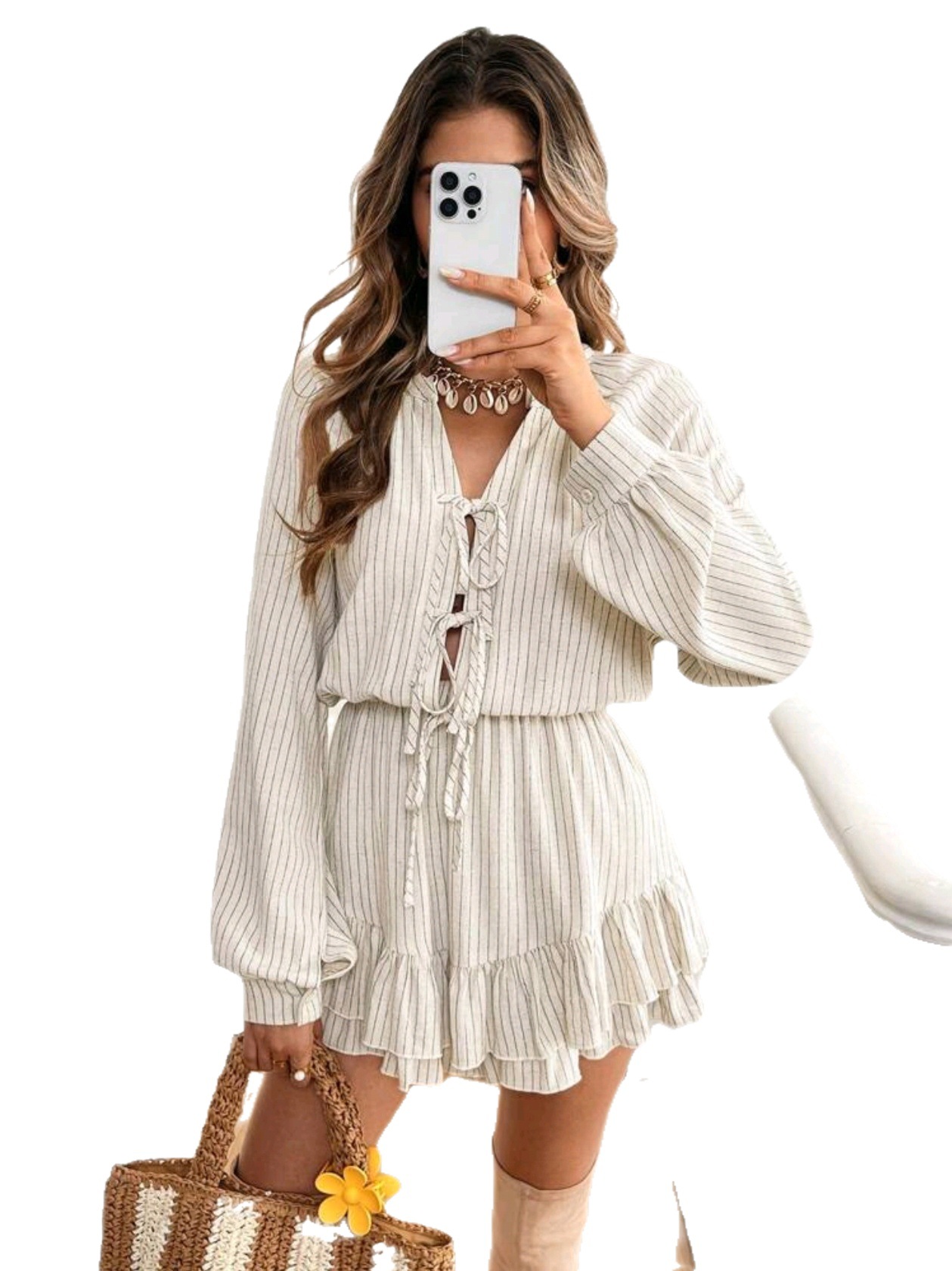Женский комбинезон-шорты из хлопка и льна с длинными рукавами и завязками, свободного кроя, повседневный, сексуальный, коллекция Весна/Лето 2025, трансграничная торговля WB OZON
