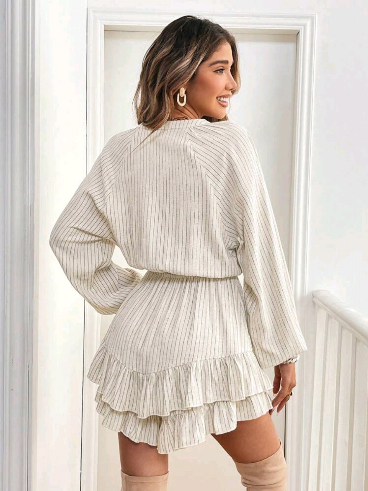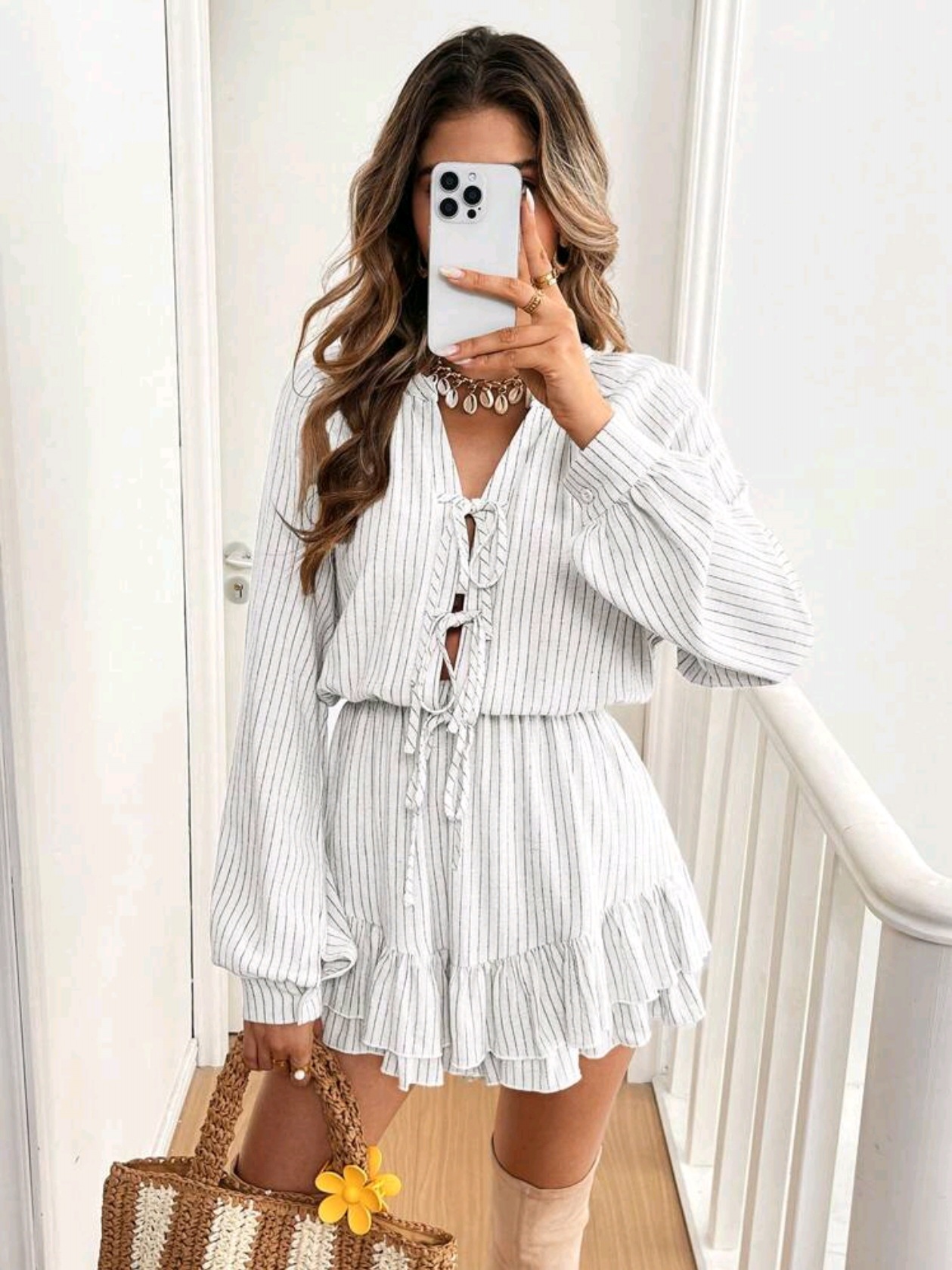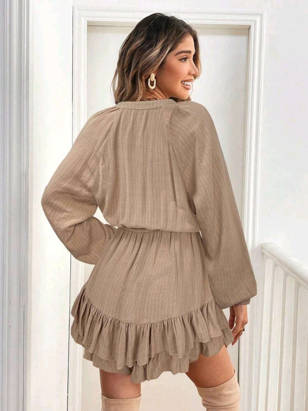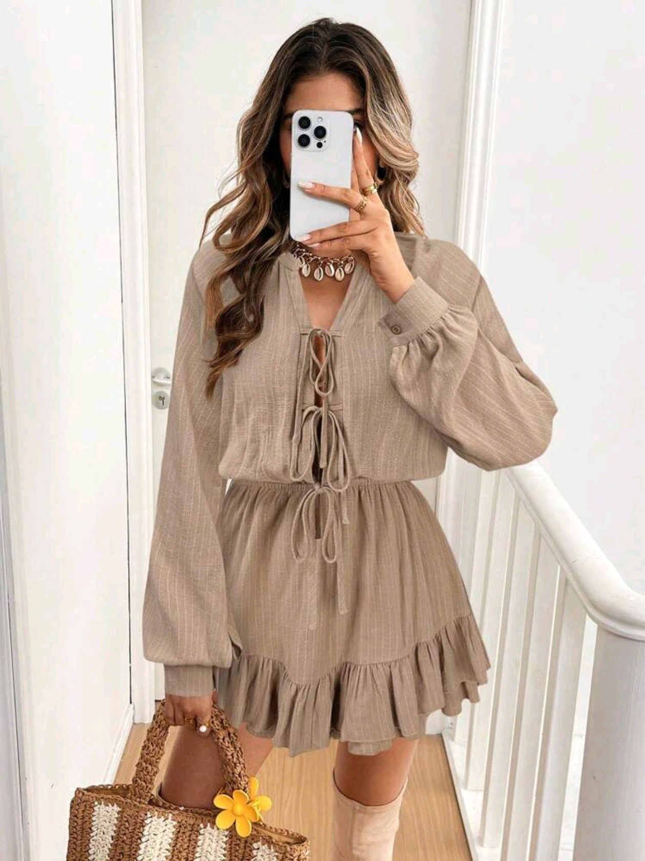 Женский комбинезон-шорты из хлопка и льна с длинными рукавами и завязками, свободного кроя, повседневный, сексуальный, коллекция Весна/Лето 2025, трансграничная торговля WB OZON