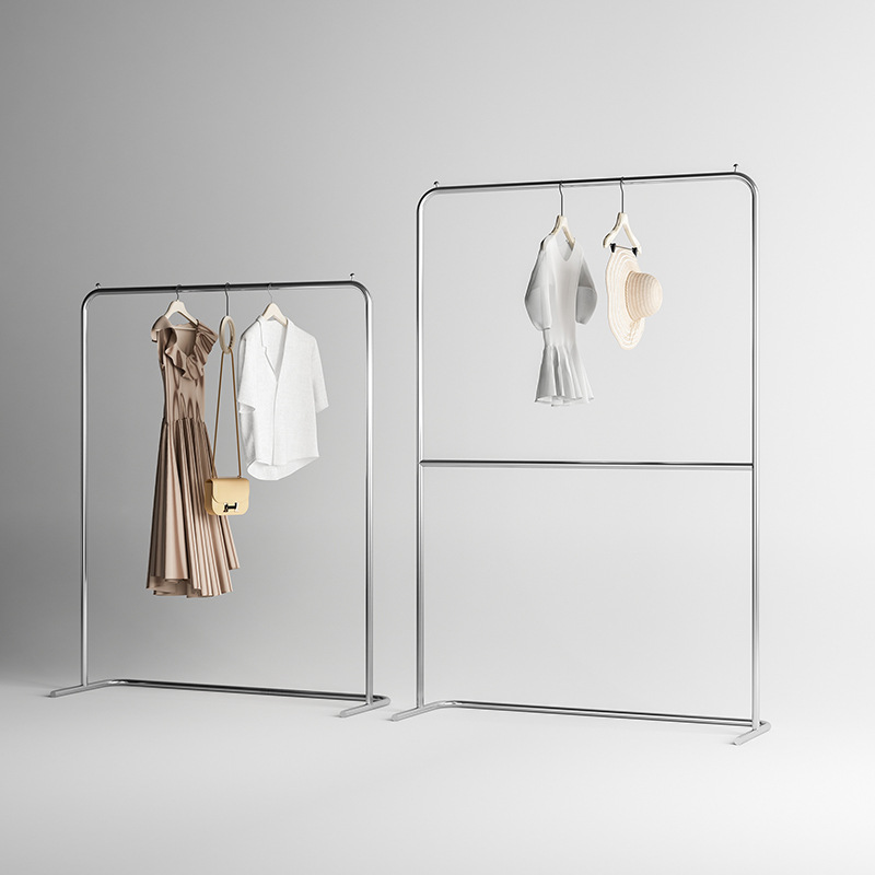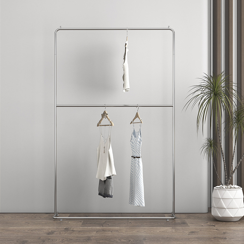 Стеллаж для магазина одежды, простая вешалка для одежды из нержавеющей стали, напольная двухслойная стойка с верхним и нижним слоем, стеллаж для магазина женской одежды, стеллаж для дисплея