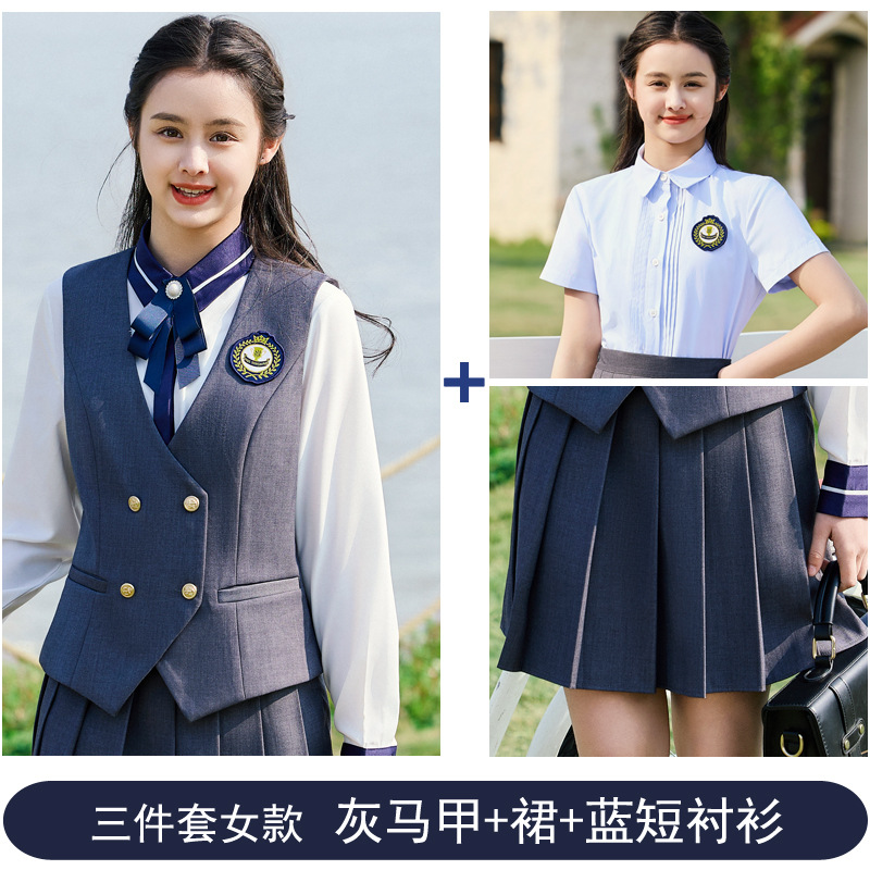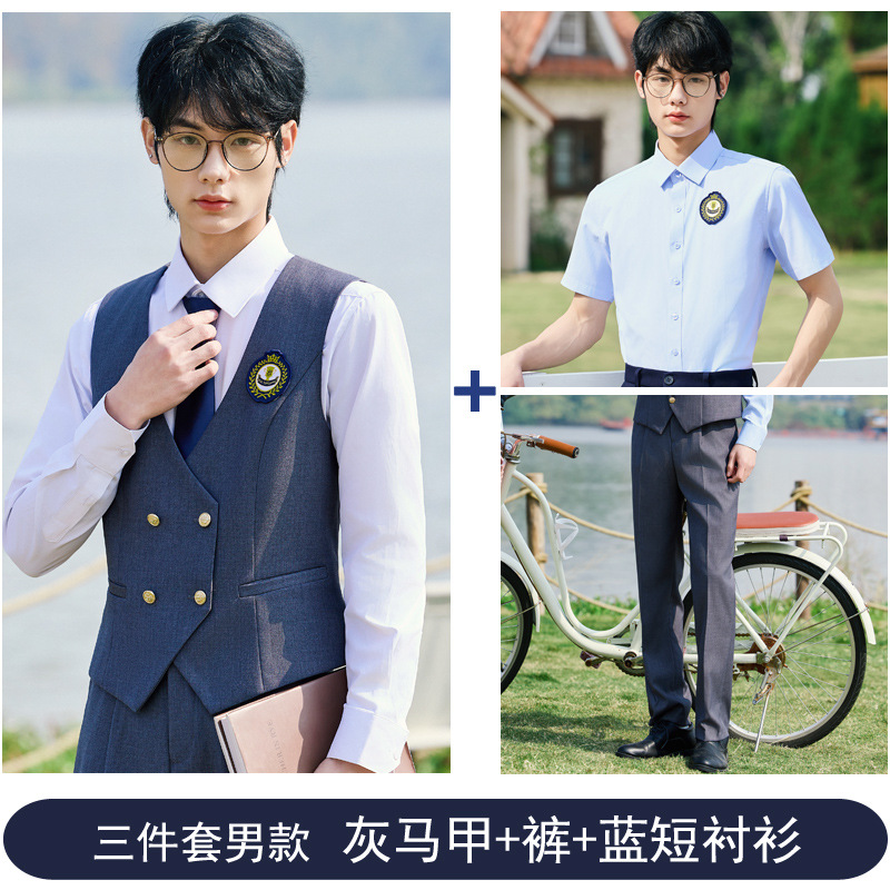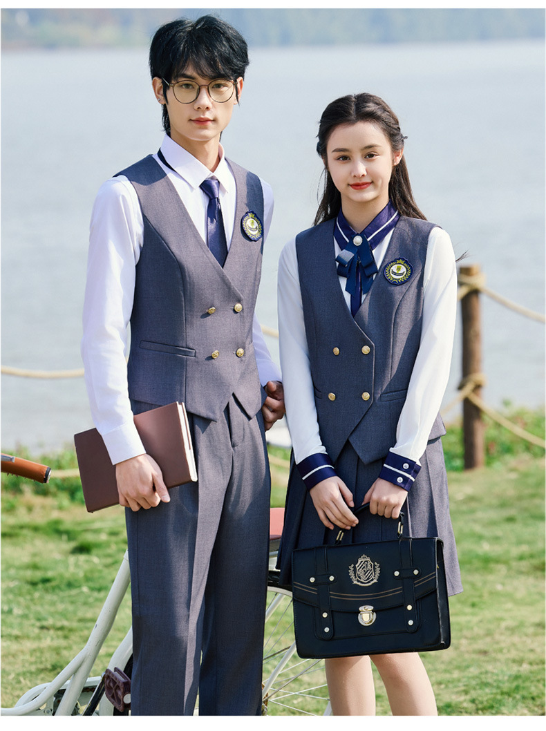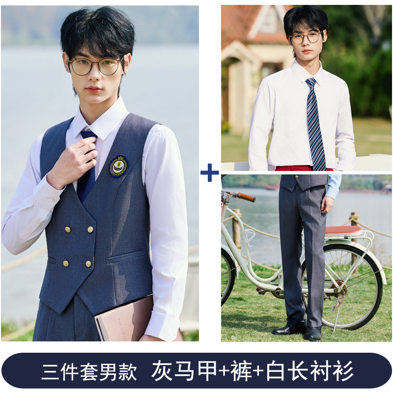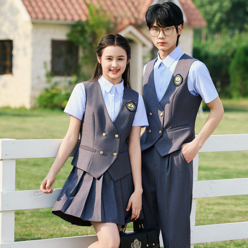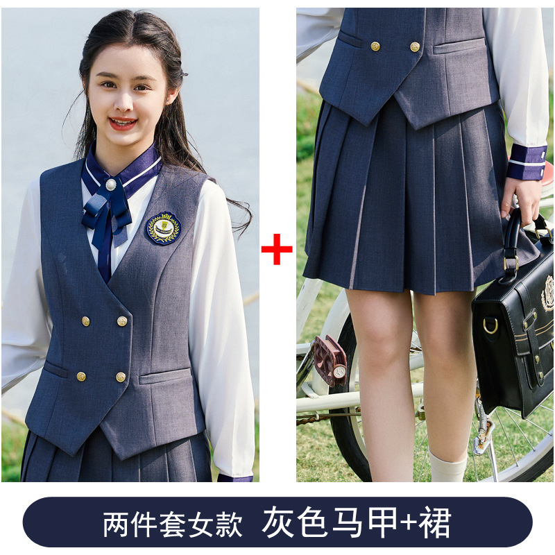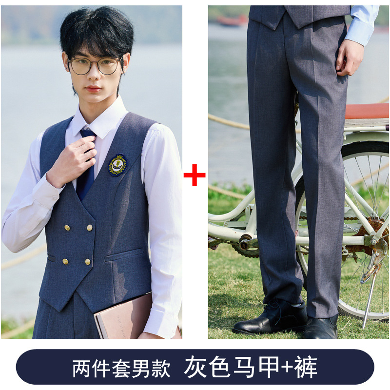 Серый жилет, короткая юбка и брючный костюм для мужчин и женщин, школьная форма в стиле преппи, школьная форма, костюм для выступления поэзии