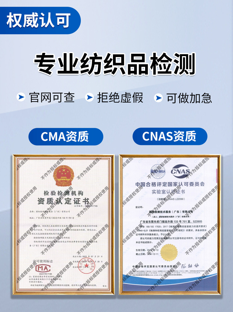 Физические и микробиологические испытания одежды и текстиля, отчет о стойкости цвета, инспекционное управление CMA, двойная сертификация от сторонней организации.