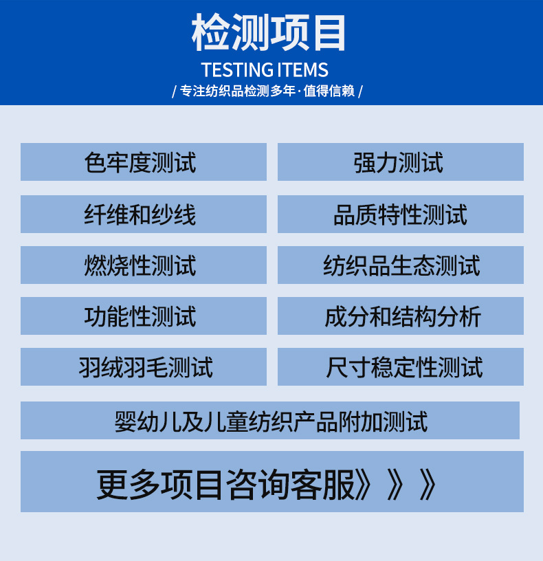 不同的色牢度检测项目能够全面评估纺织品服装在各种可能的使用和处理条件下的颜色保持能力,为产品质量提供保障。
