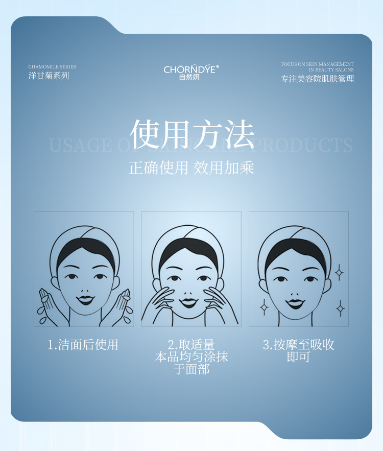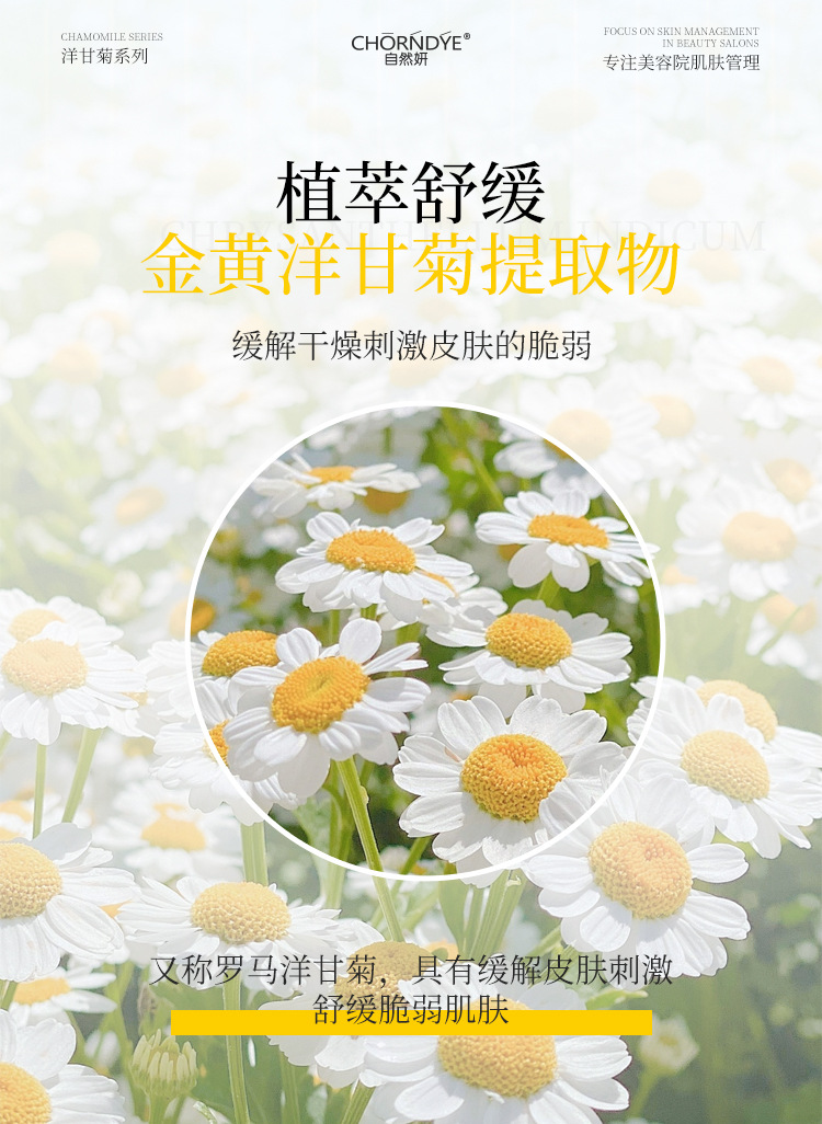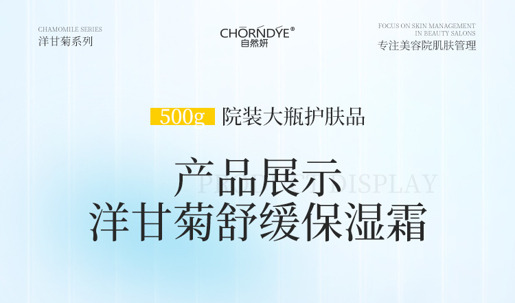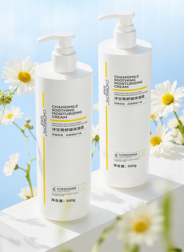 Успокаивающий увлажняющий крем с ромашкой 500г; Успокаивающий тоник с ромашкой, 500 мл; Успокаивающий лосьон с ромашкой, 500 мл; Успокаивающий массажный крем с ромашкой, 500 г; Маска с ледяными кристаллами ромашки, 500 г; Нежное средство для снятия макияжа с ромашкой, 500 мл; Корейская версия успокаивающей мягкой маски-пудры с ромашкой, 1000 г; Успокаивающее очищающее средство с ромашкой, 500 г