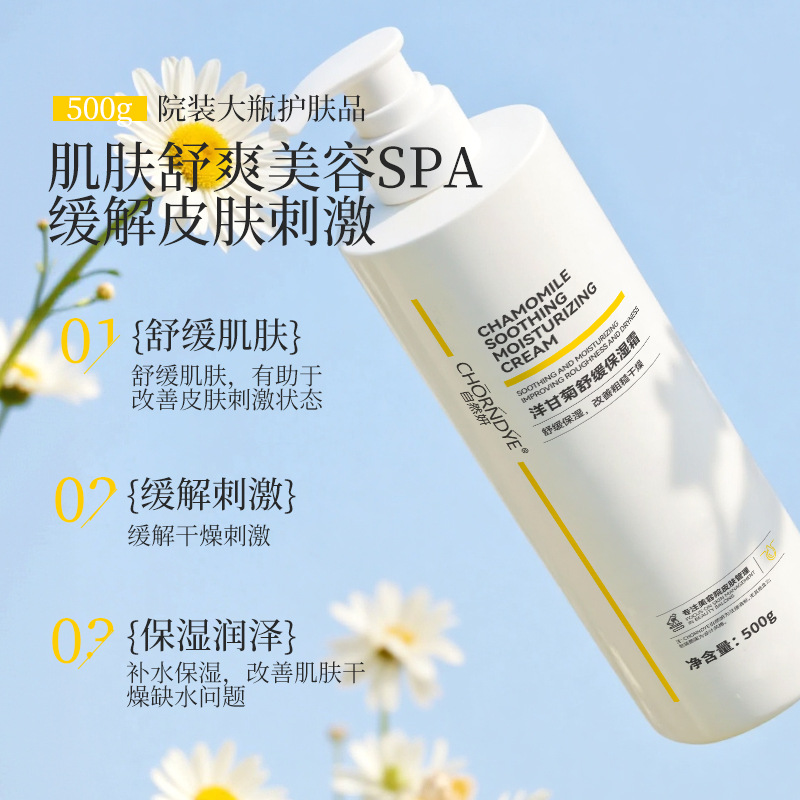 Успокаивающий и восстанавливающий крем с ромашкой 500 г, увлажняющий, успокаивающий, для чувствительной кожи, уменьшающий покраснения, для салонов красоты