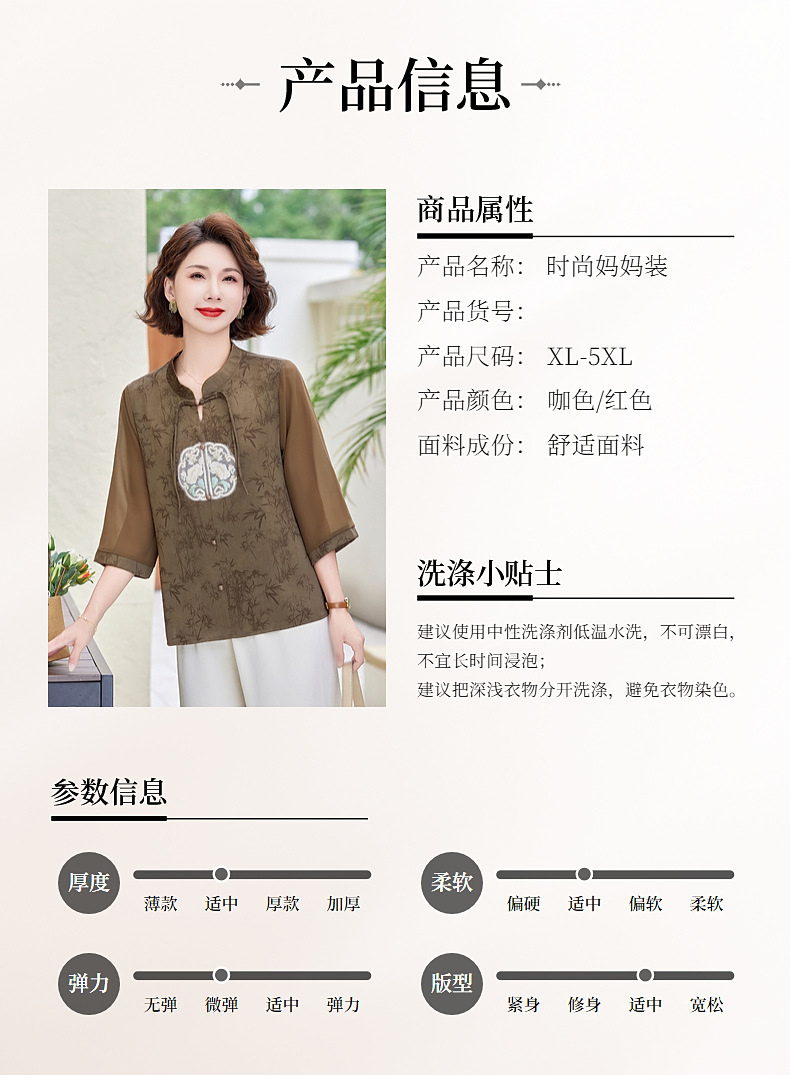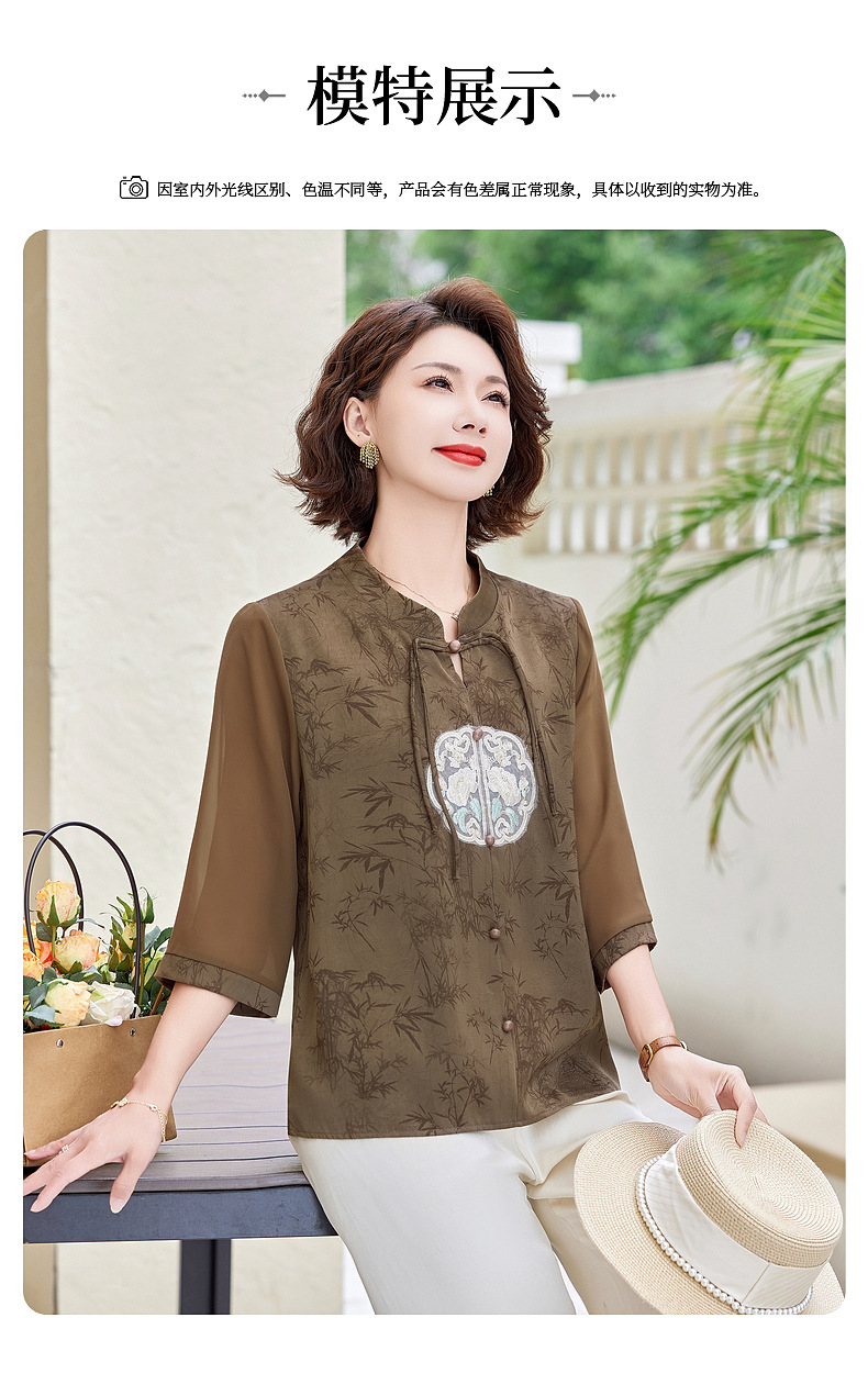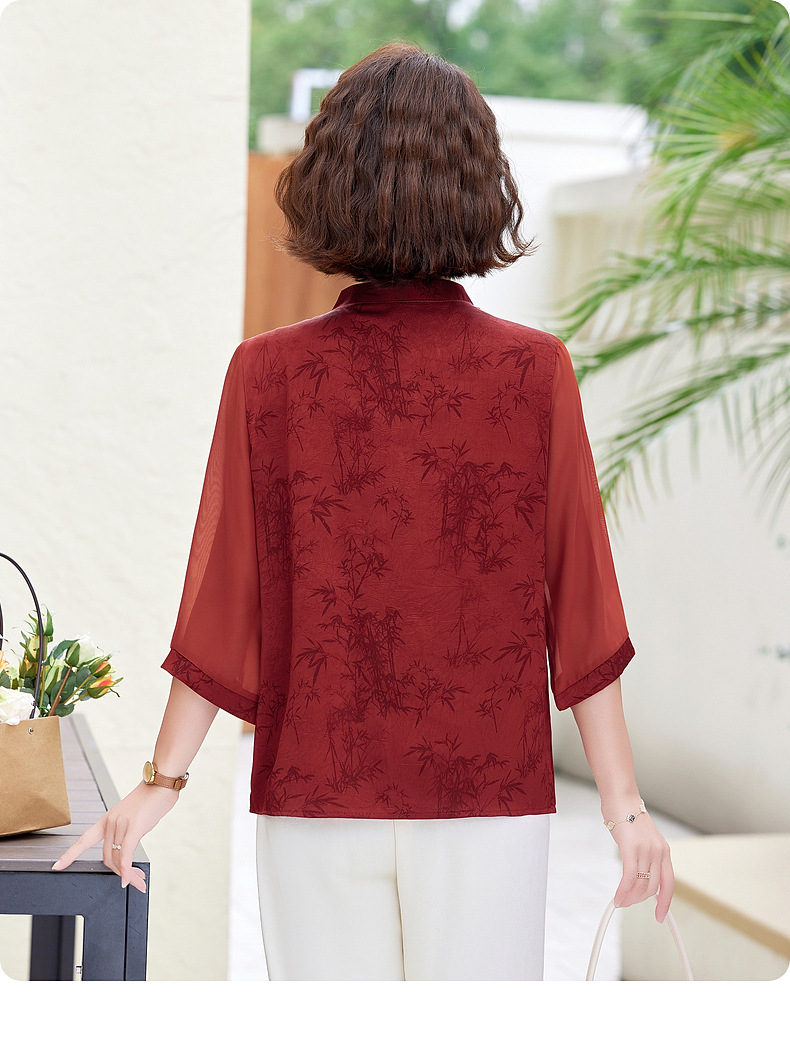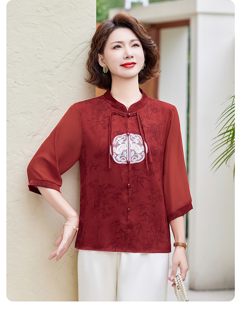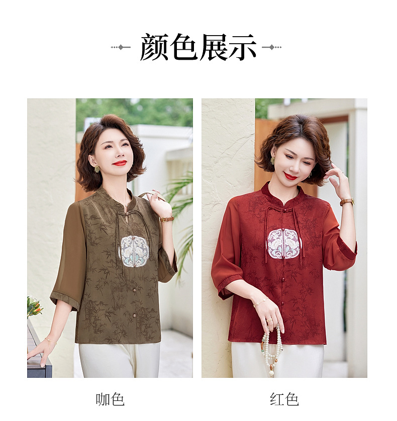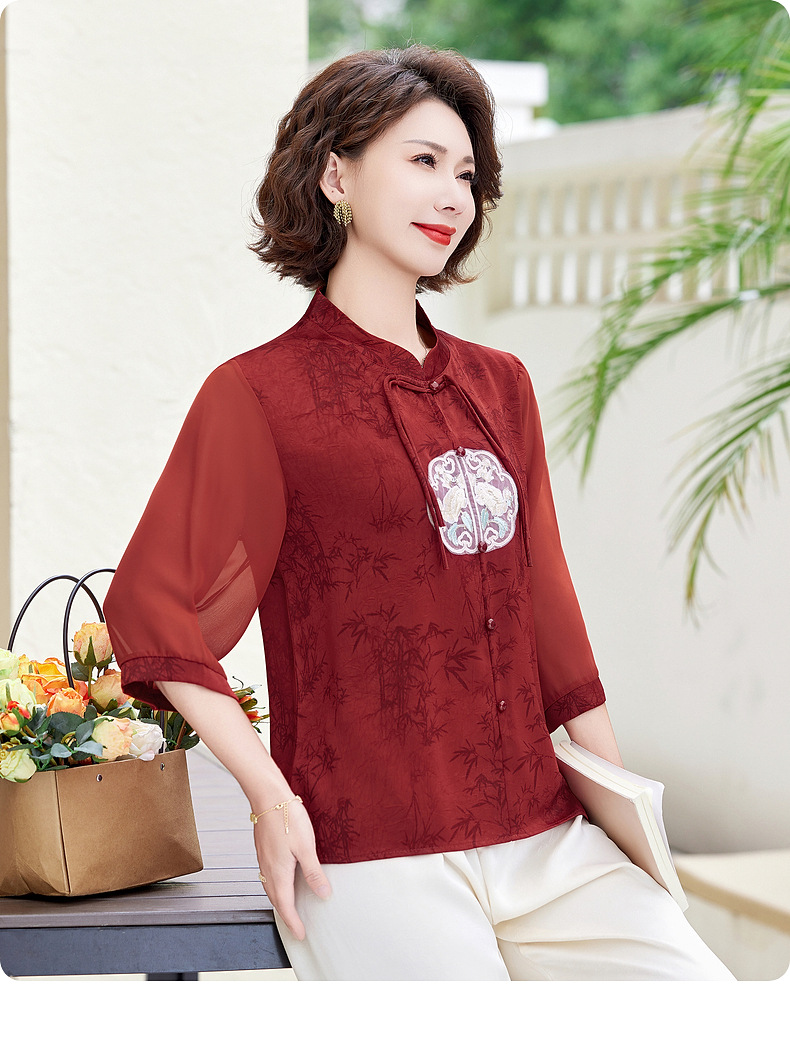 Летняя футболка для мам, рубашка с коротким рукавом в китайском стиле, новая модель 2025 года, модный и омолаживающий топ для женщин среднего и пожилого возраста.