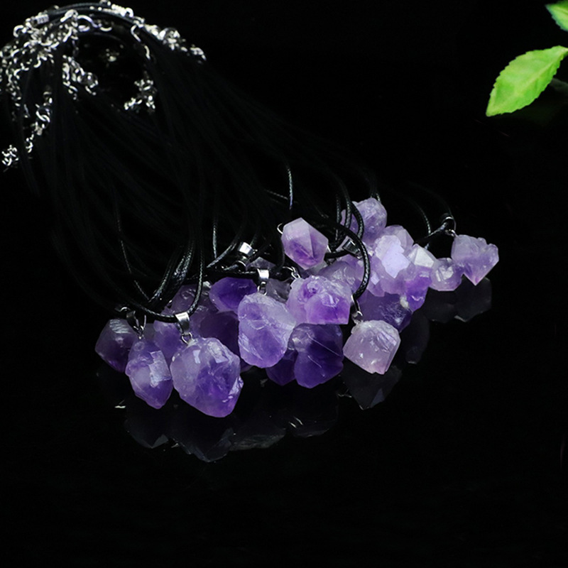 Кулон из необработанного кристалла аметиста (с кожаным шнуром) AY5042601