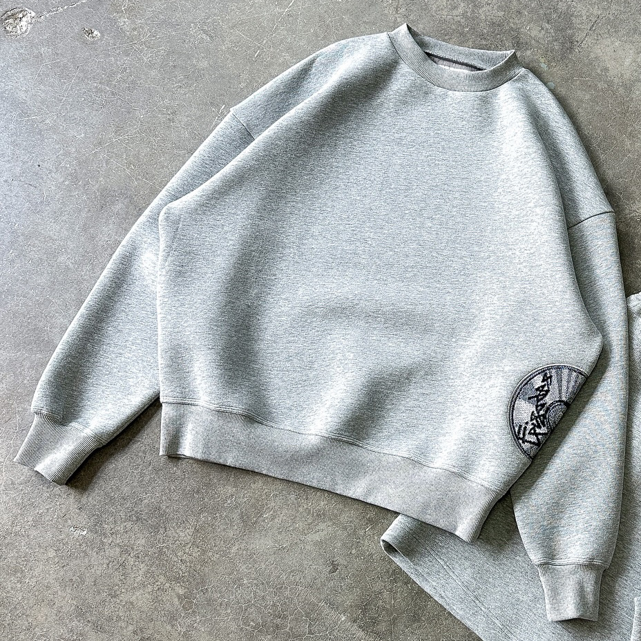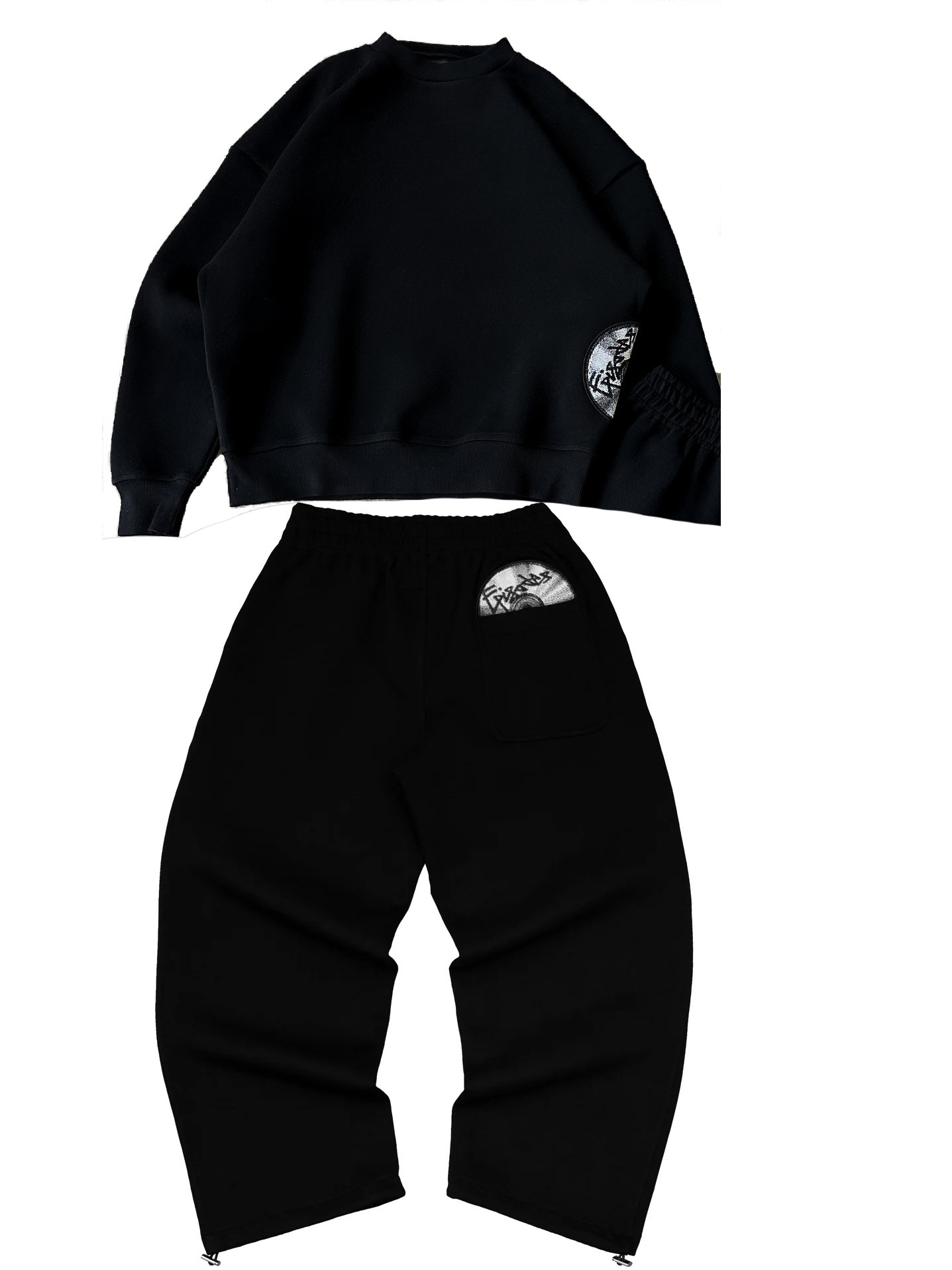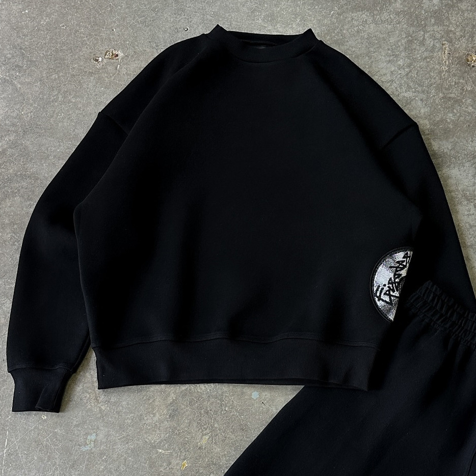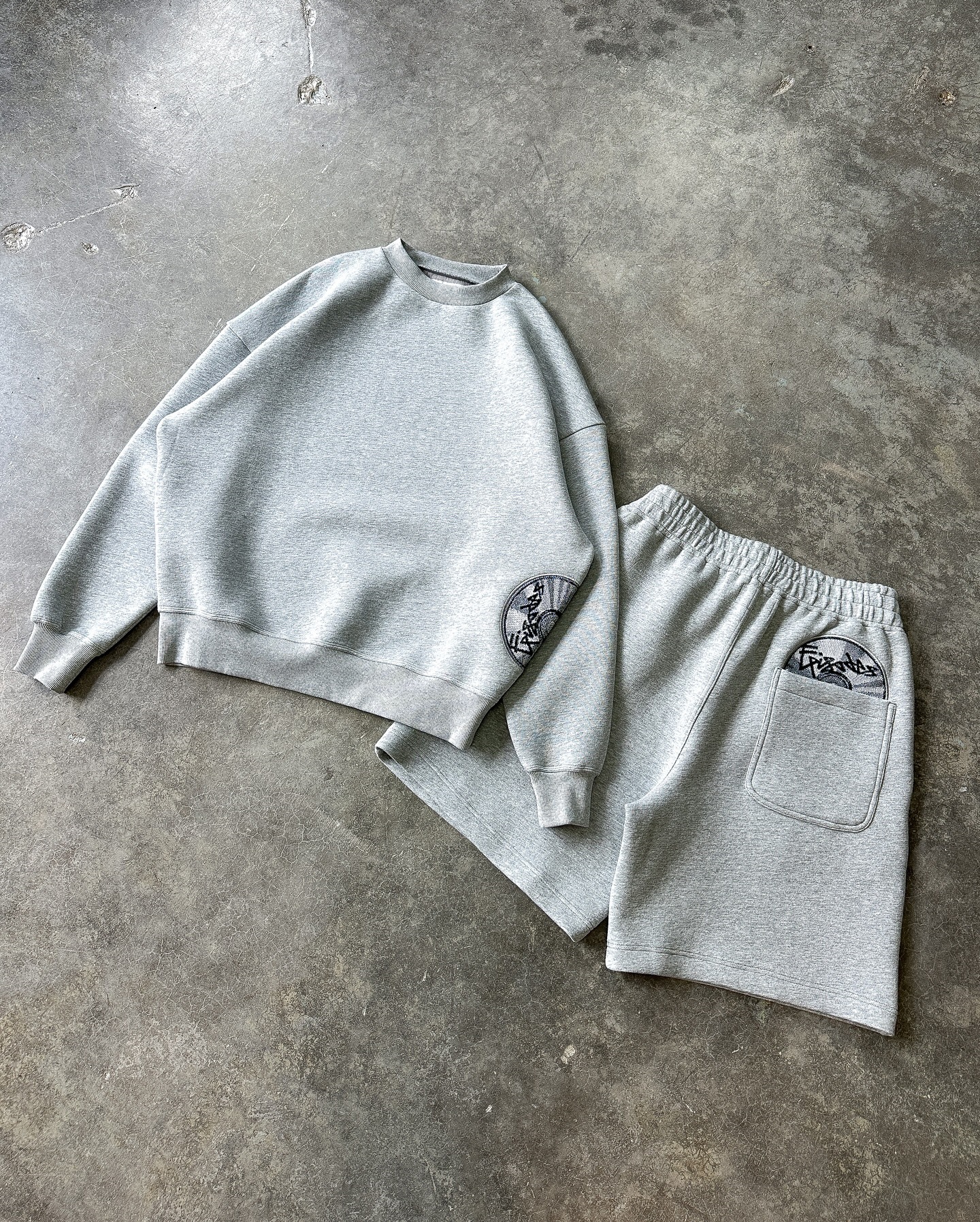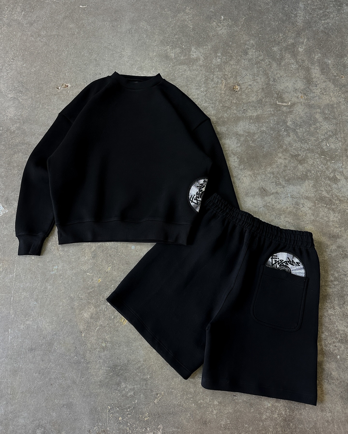 серый; черный; 1; 2; 3; 4; 5; 6; черные шорты; серые шорты; Черный комплект из свитшота с круглым вырезом и шорт; Серый костюм из толстовки и шорт с круглым вырезом; Серый брючный костюм с круглым вырезом; Черный брючный костюм с круглым вырезом