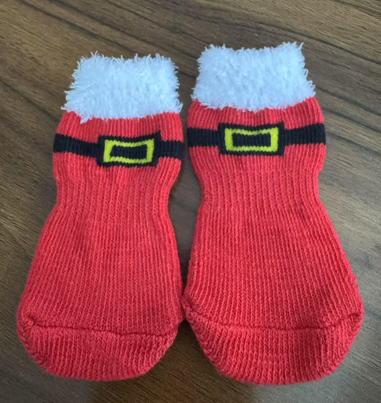 Носки для животных для трансграничной торговли, рождественские носки, непромокаемые чехлы для лап с изображением Санта-Клауса, оленей, снеговиков, нескользящие, грязеотталкивающие, для маленьких собак породы Тедди