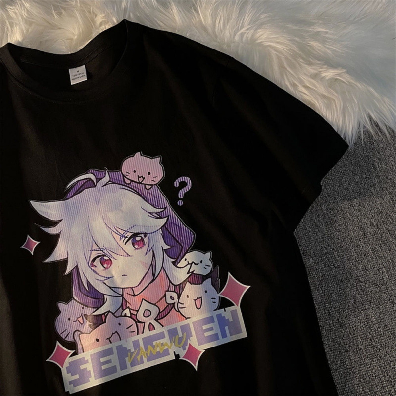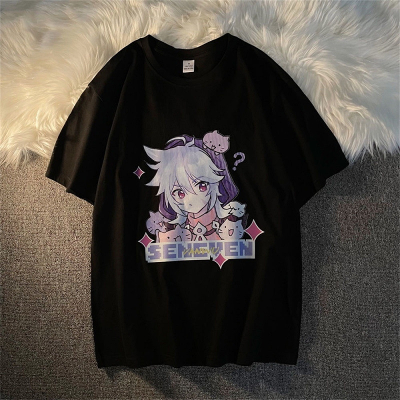 Футболки с короткими рукавами для мужчин и женщин, свободные летние новые двумерные анимационные принты, модные брендовые повседневные универсальные пятиточечные полурукава