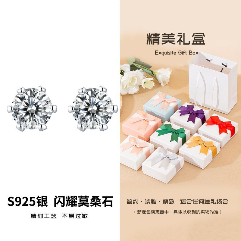 Серьги с шестью когтями 50 баллов (с сертификатом) + изысканная подарочная коробка; Серьги-пусеты с шестью зубцами 1 карат (с сертификатом) + изысканная подарочная коробка; Серьги с шестью когтями 50 баллов (с сертификатом) + подарочная коробка с розой; Серьги-пусеты с шестью зубцами 1 карат (с сертификатом) + подарочная коробка с розой