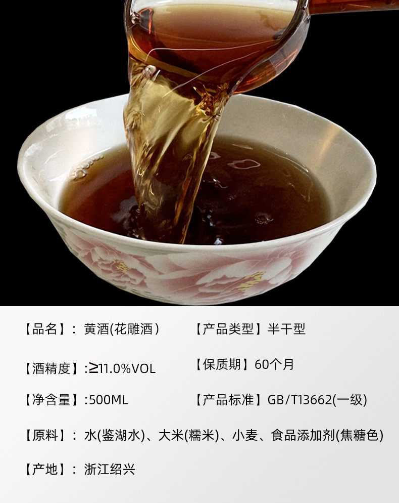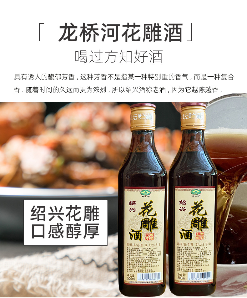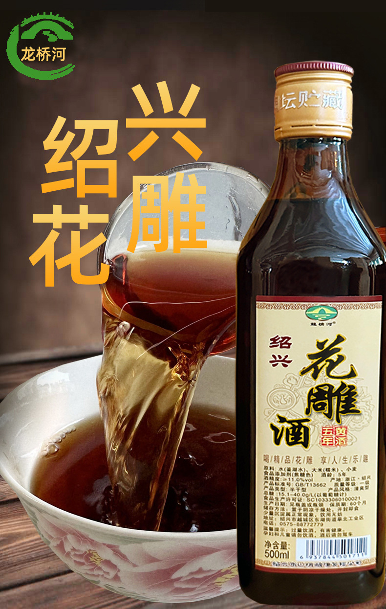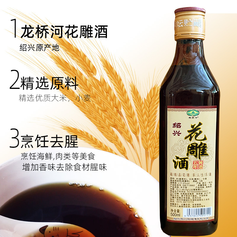Вино Longqiaohe Huangjiu Shaoxing Huadiao, полусухое, для блюд из креветок и крабов, для личного потребления, кулинарное вино для кухни, в бутылках, для приготовления а-гяо.