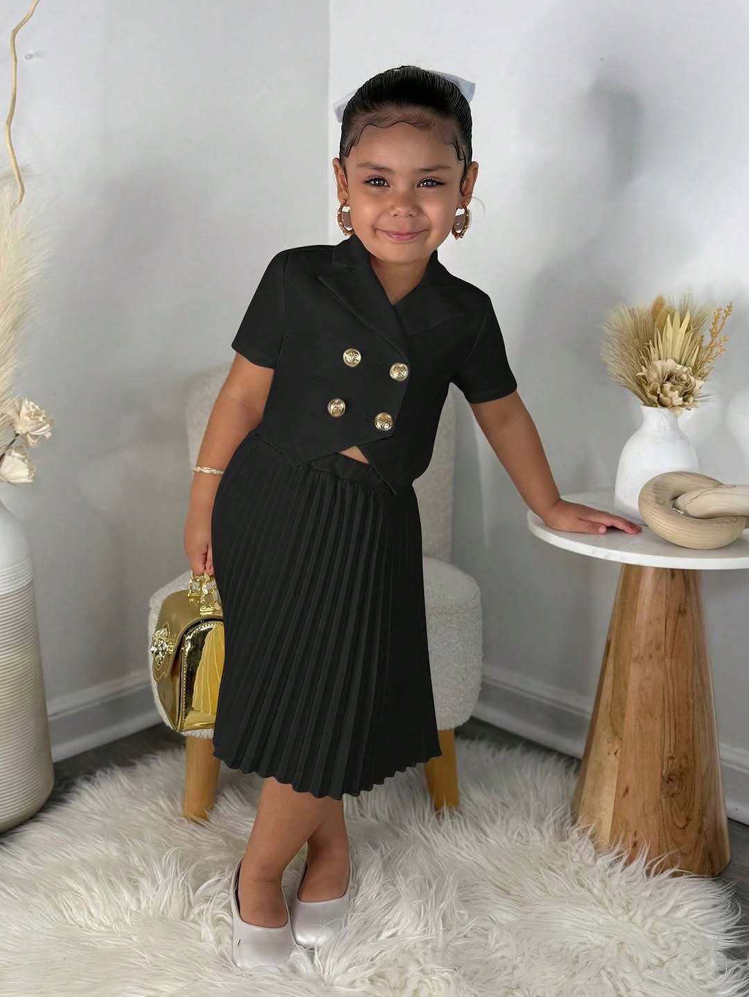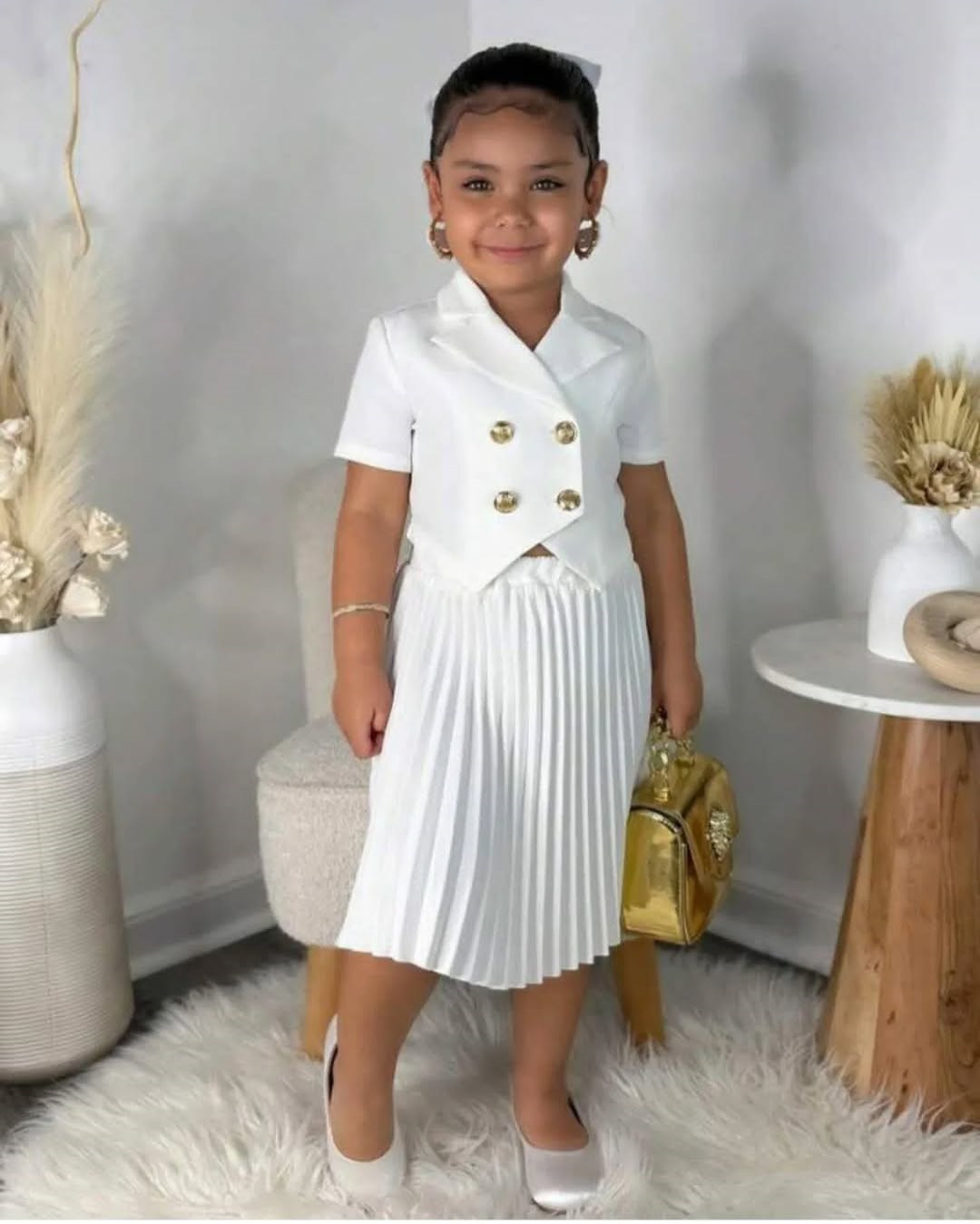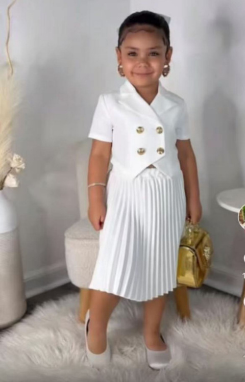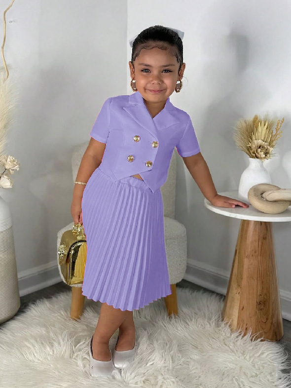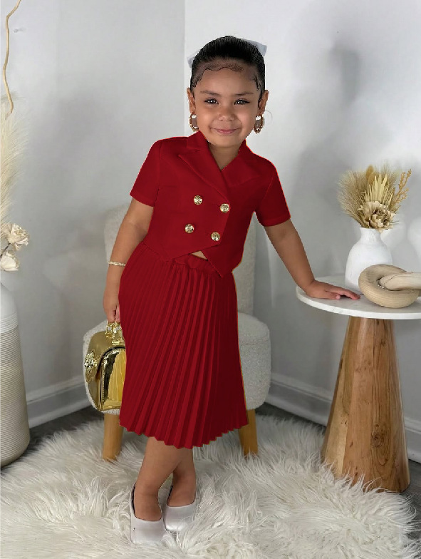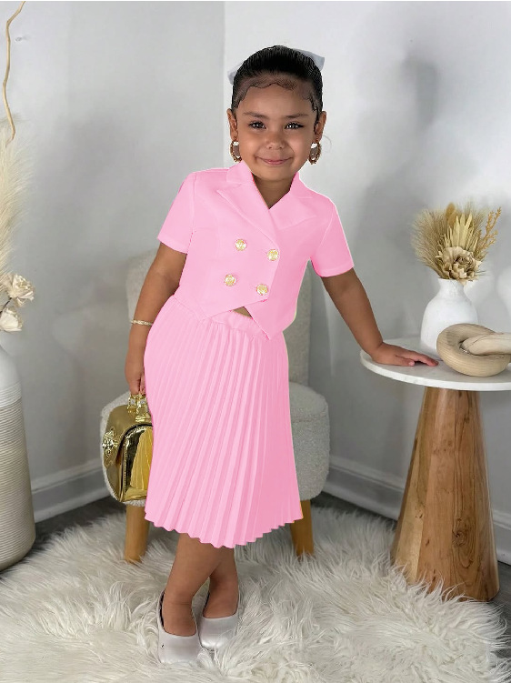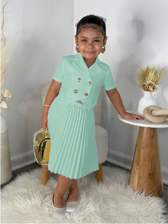 Новинка 2025 года: модный костюм для девочек в европейском и американском стиле, состоящий из двух предметов (рубашка с воротником + юбка), прямые поставки от производителя.