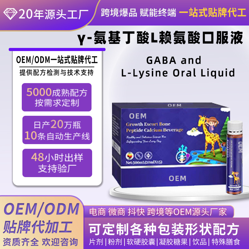 定制γ氨基丁酸L赖氨酸口服液 青少年钙镁锌胶原蛋白肽液体钙