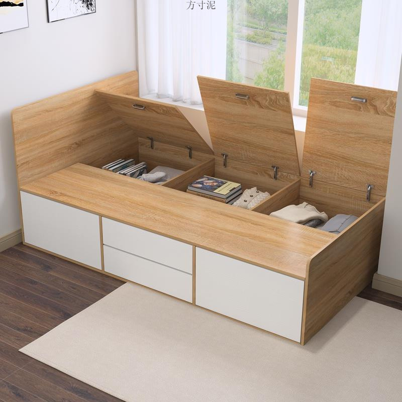 Скандинавская спальня односпальная кровать для взрослых 1,2 м пластина одноместный ящик кровать для хранения массивной древесины высокая кровать для оптовых продаж