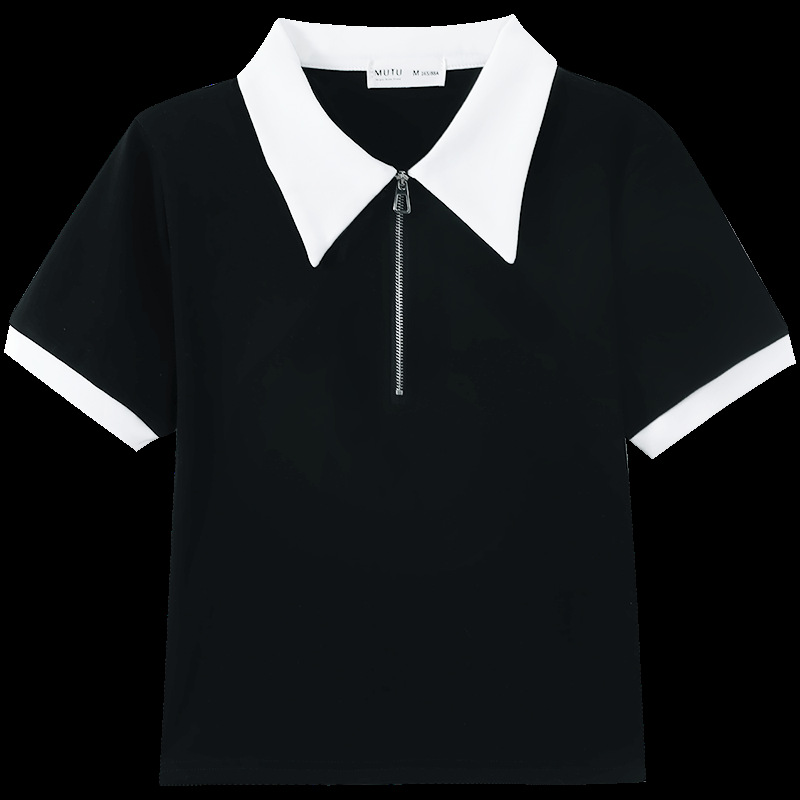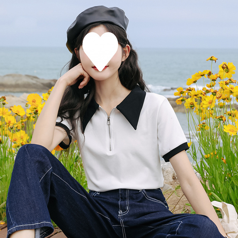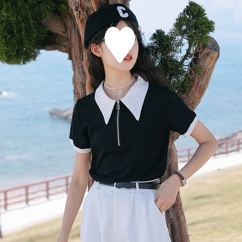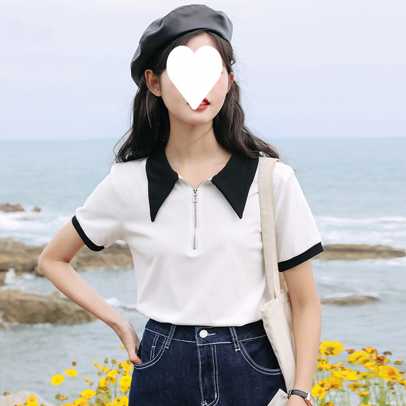 Повседневная футболка с короткими рукавами и половиной молнии с лацканами, женская летняя облегающая рубашка, удобная для сочетания, рубашка-поло на правое плечо, топ