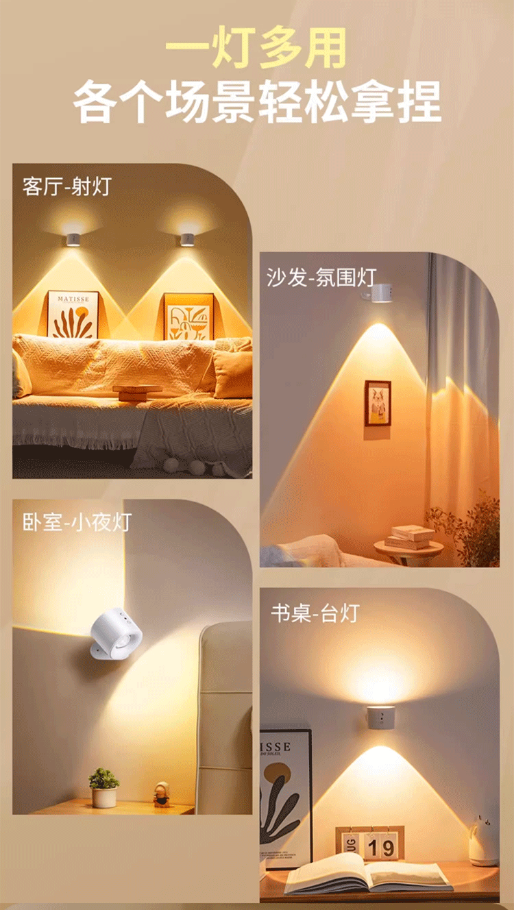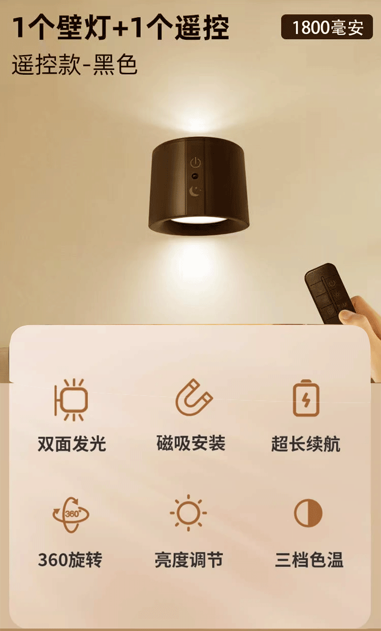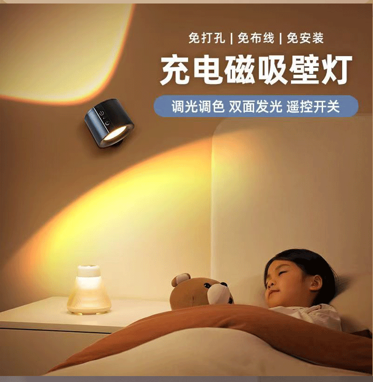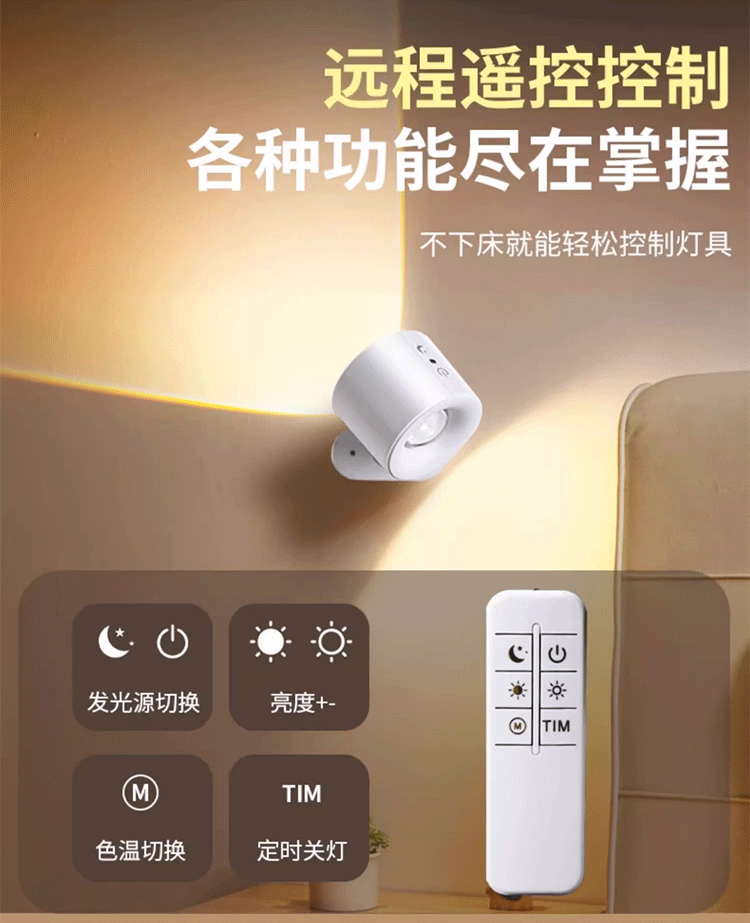 Беспроводная настенная лампа без проводки без отверстий прикроватная лампа для чтения в гостиной с фоновой стеной атмосфера расширенного пульта дистанционного управления зарядный прожектор
