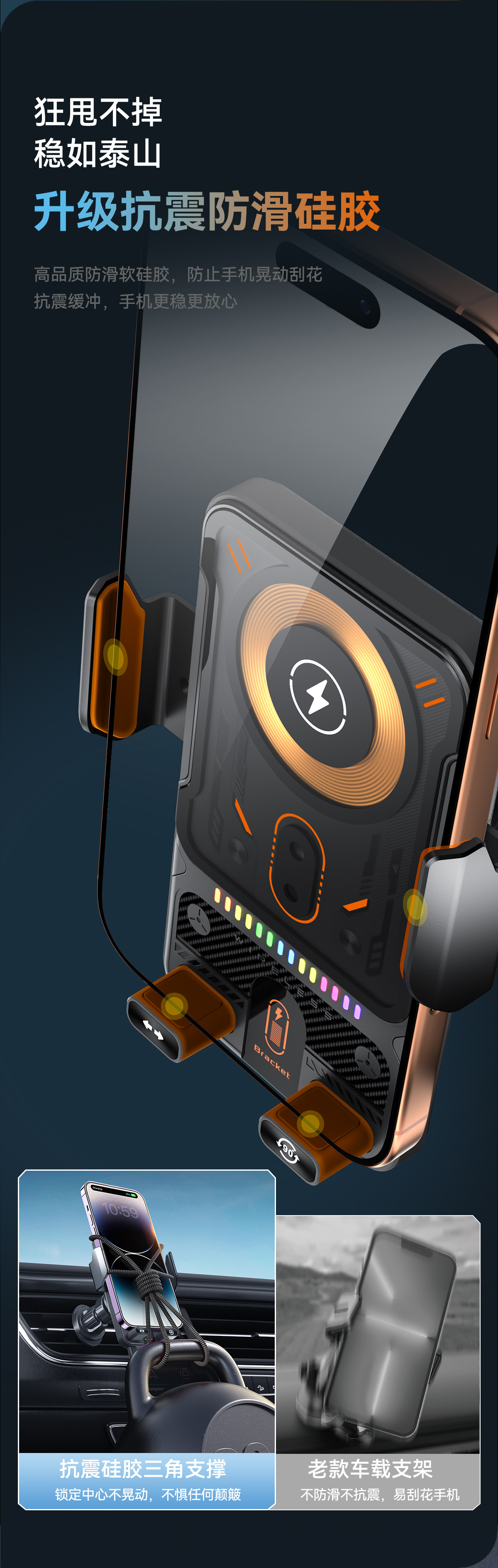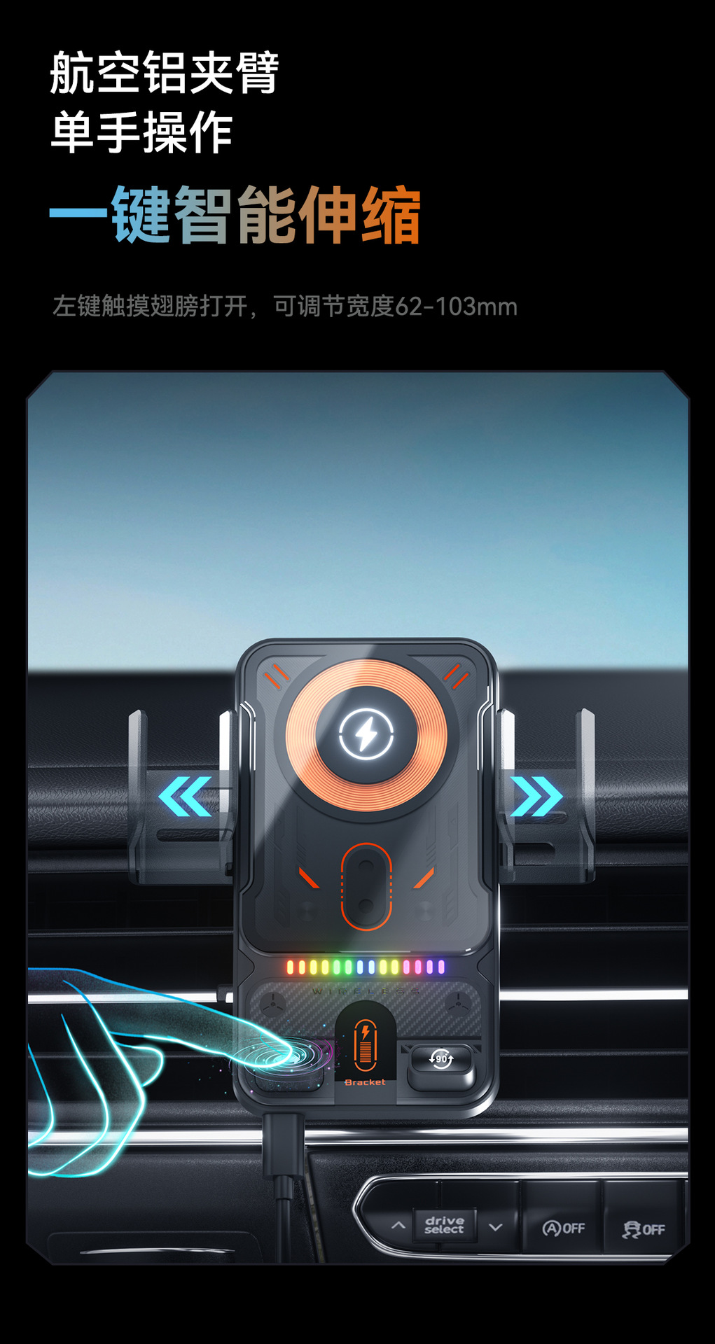 Новый электрический зажимной держатель для телефона в стиле киберпанк, прозрачный держатель с беспроводной зарядкой для автомобильного воздуховода