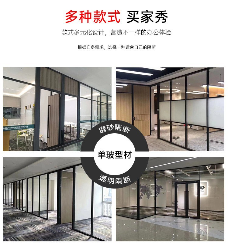 Чрезвычайно узкая однослойная стеклянная перегородка; Панорамная двойная стеклянная перегородка; Перегородка с двойными стеклянными жалюзи; Туманная стеклянная перегородка; Одинарная стеклянная перегородка с колонной; Экологичная деревянная дверь; Одинарная стеклянная дверь с алюминиевой рамой; Дверь с двойным стеклом