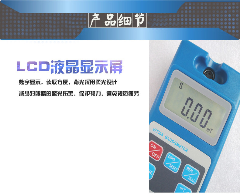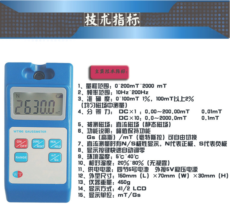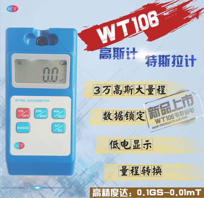 Оптовый измеритель Гаусса WT106 Измеритель Тесла Измеритель Гаусса большого диапазона 3000GS с блокировкой пикового сигнала Предупреждение о низком заряде батареи
