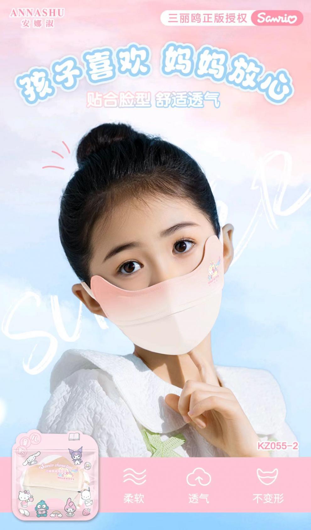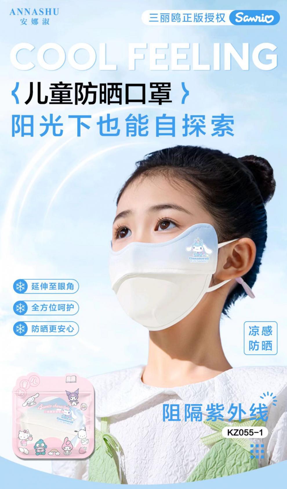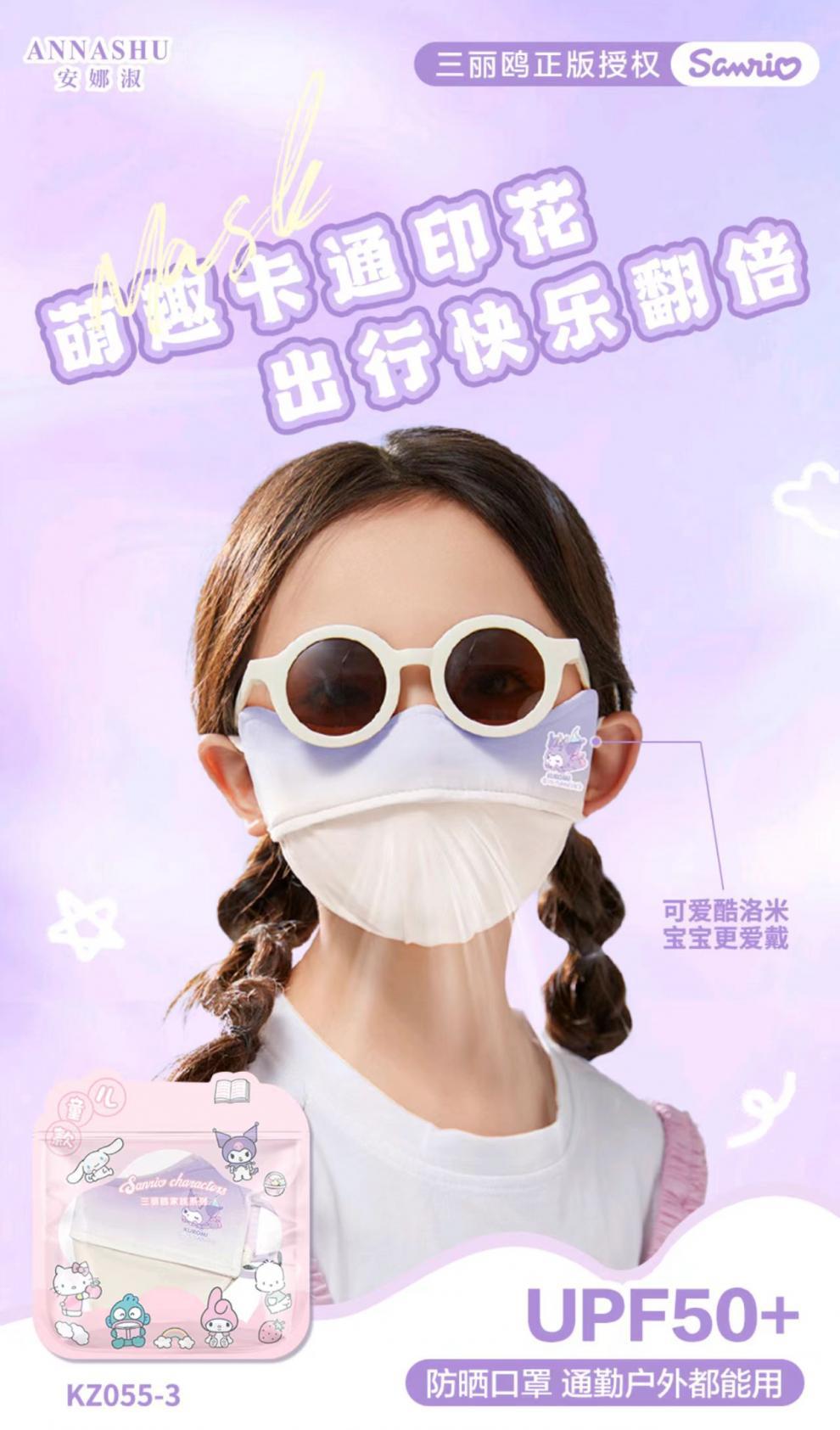 Аутентичная детская солнцезащитная маска Sanrio серии единорог, градиентная маска для румян UPF50 + регулируемая для детей 3-12 лет