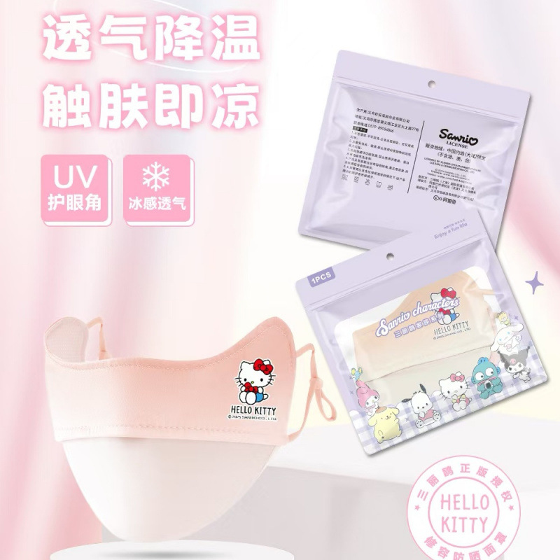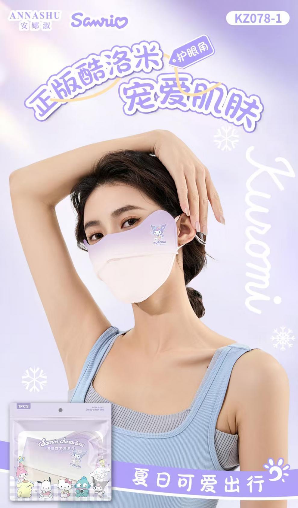 Защитная маска для взрослых, натуральная маска HelloKitty Kuromi для защиты глаз, студенческая маска для румян UPF50 +
