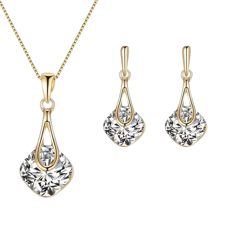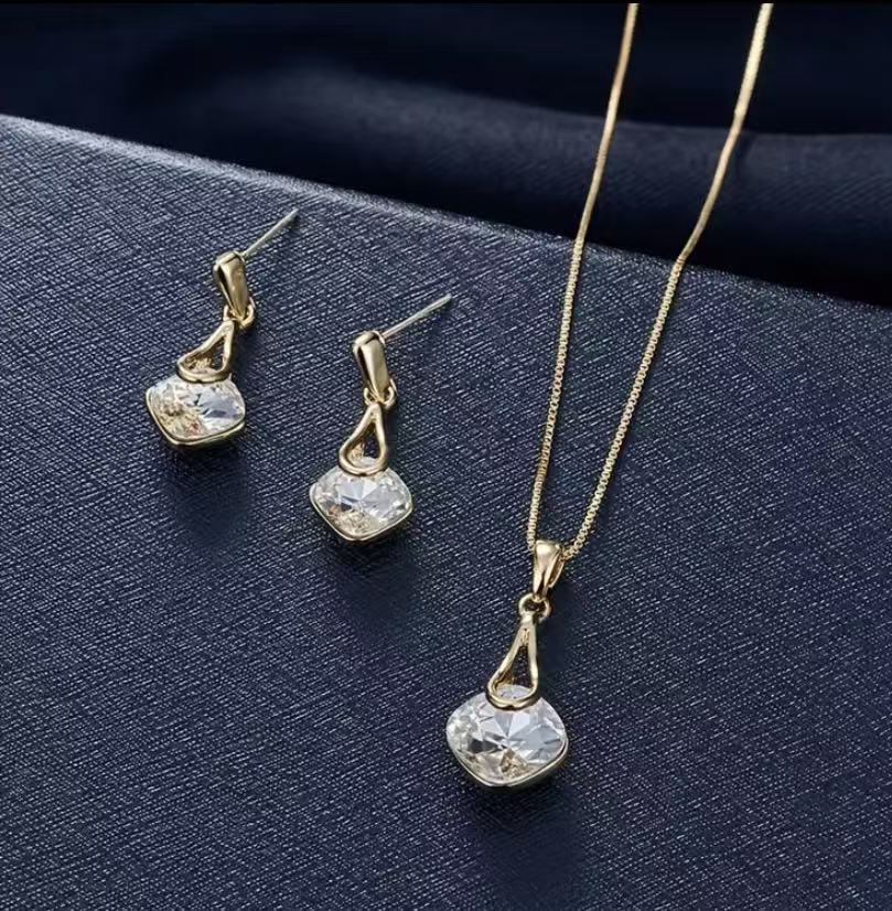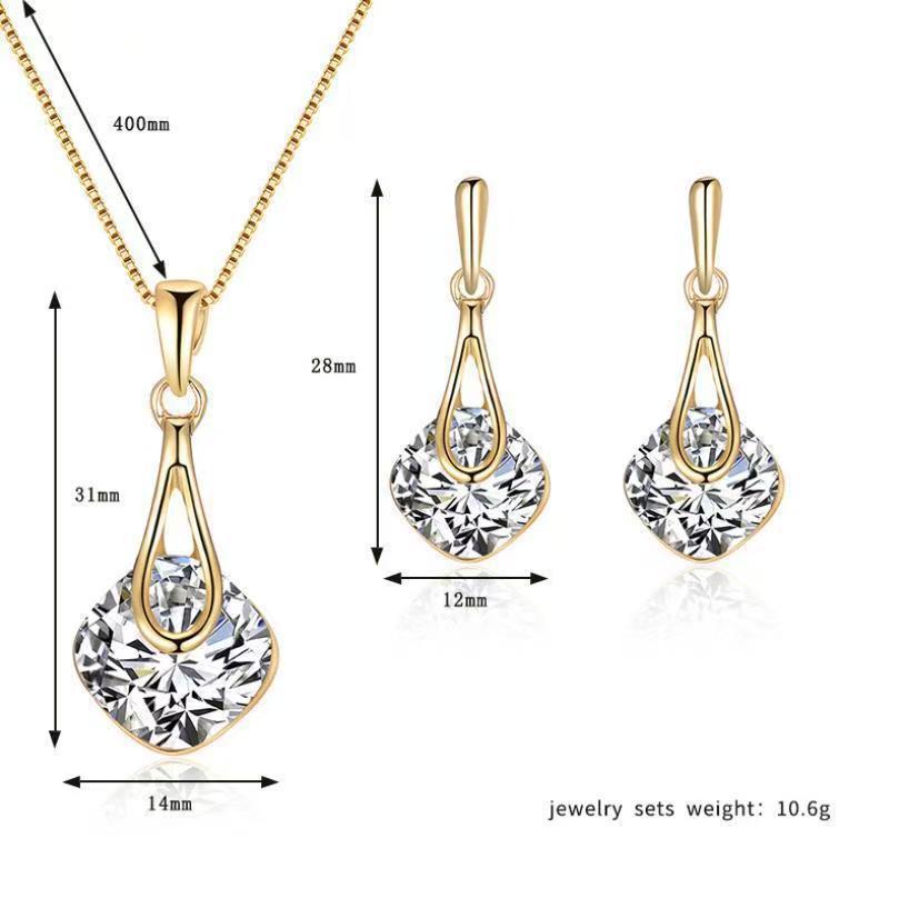 Новый персонализированный квадратный комплект ювелирных изделий в корейском стиле, ожерелье из гальванического стекла, серьги, комплект ювелирных изделий, трансграничный готовый запас